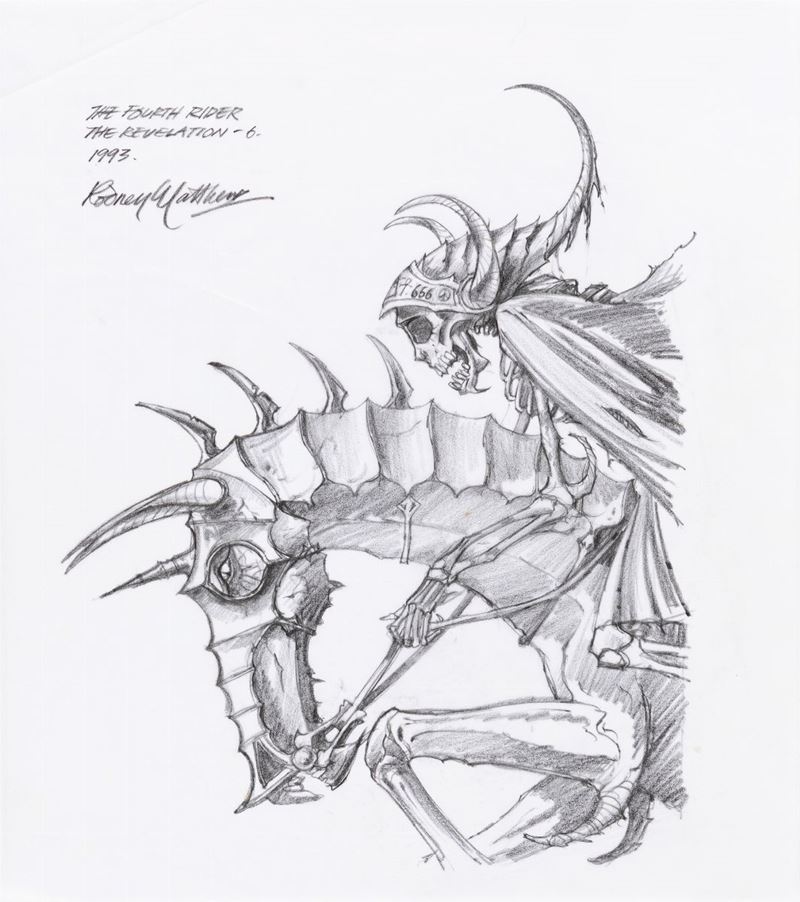 Disegno preliminare realizzato da Matthews nel 1993 per il dipinto intitolato "A Voice Like Thunder", successivamente utilizzato come copertina dell'album "Interregnum" della band metal Stairway nel 2010. Alcune pieghe. Firmato, datato e titolato.