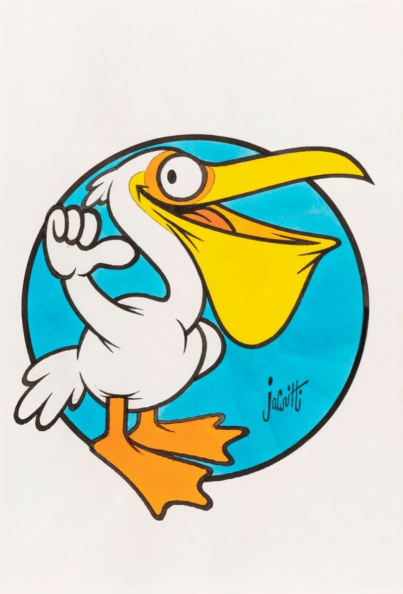 Lot made up of 6 original illustrations made by Jacovitti in the early 80s for the logo of the publishing house Studio Natura Edizioni. Signed in three tables.