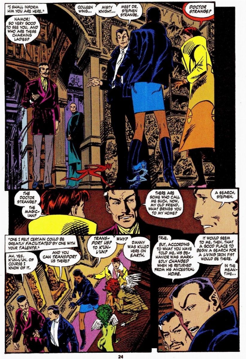 Original comic art made by Byrne for "Call My Land K'un-L'un", published on Namor the Sub-Mariner n. 21 on page 17 by Marvel in 1991. Namor visits Dr. Strange's Sanctum Sanctorum. Signed and dedicated.