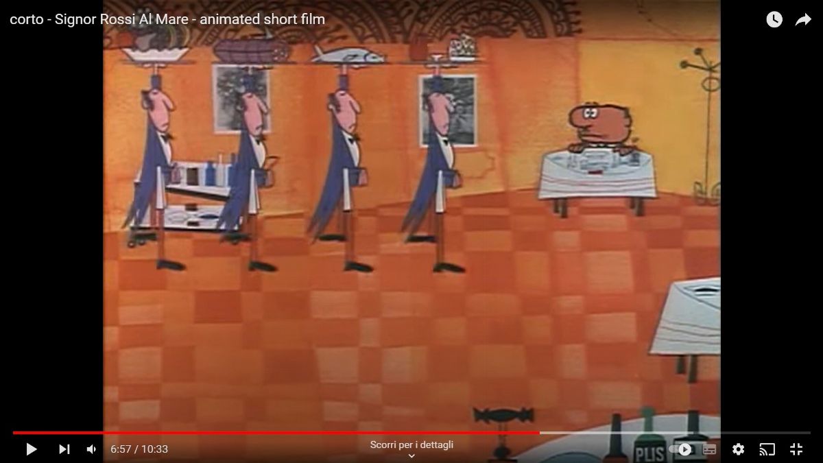 Original cel (two sheets) on a painted background for the animated short film "Mr Rossi at the sea", produced and directed by Bruno Bozzetto in 1964. In the third short film dedicated to him, Mr Rossi leaves for a summer holiday towards a very crowded tourist resort, will face all the typical obstacles of the place. The scene we presented is present at minute 6:57 (https://www.youtube.com/watch?v=a7ToqePxW6M&t=351s).