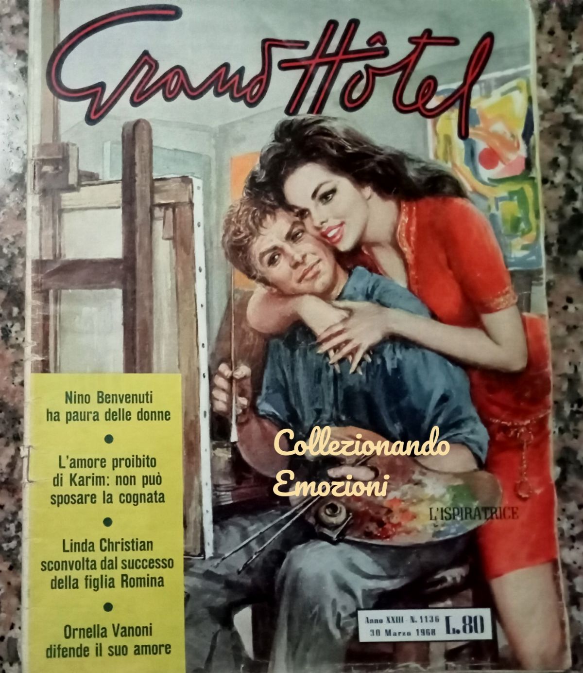 Original cover made by Molino for the Grand Hotel magazine n. 1136 of 1968. Signed.