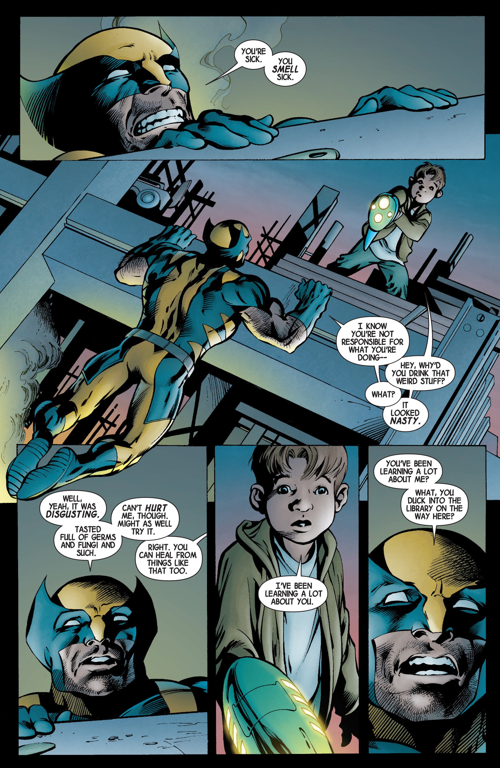 Original comic art made by Davis for "Hunting Season", published in Wolverine n. 2 on page 11 by Marvel in 2023. Ink by Mark Farmer. Signed by Farmer.