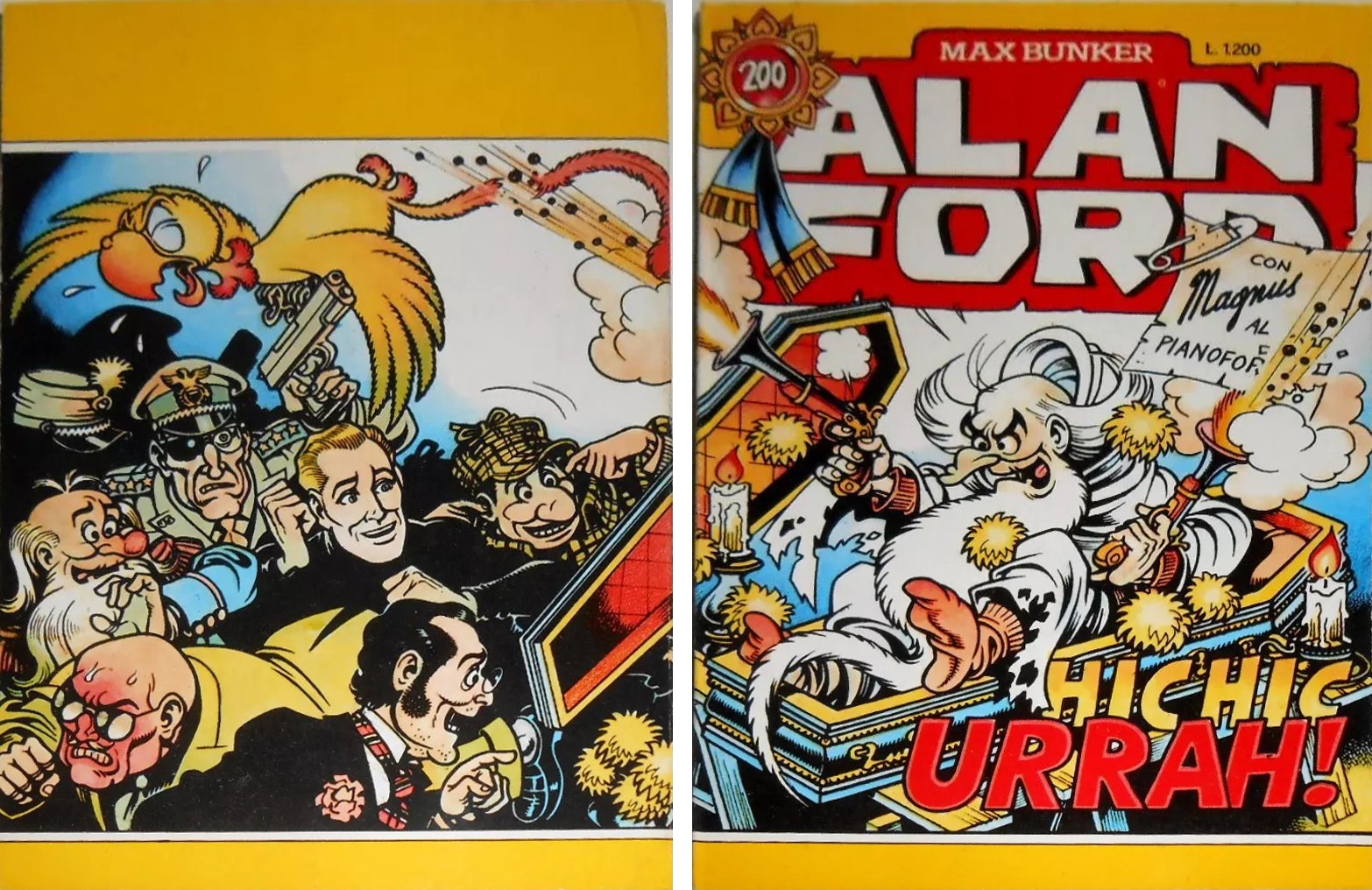 Preliminary study made by Magnus for the cover of the historic issue 200 by Alan Ford "Hic Hic Hurrà", published by Editoriale Corno in 1986. Eleven years after leaving the magazine, Magnus returns to create this historic album in which the presumed death of Number One is finally revealed. Signed.