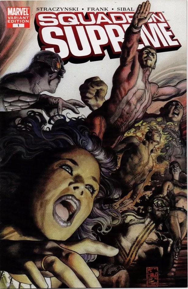 Original cover made by Bianchi for the variant cover of "Squadron Supreme" n. 1 published by Marvel in 2006. Bianchi's first official work for Marvel, the first of a brilliant career. Signed.