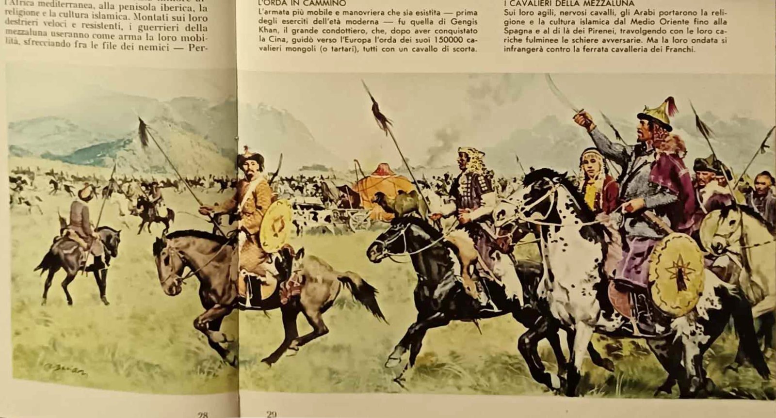 Original illustration made by the Czech master Burian published for the first time in the volume "Il cavallo e l'uomo" in the series Guarda e scopri gli animali vol. 22 on pages 28 and 29 by AMZ in 1972. Trained at the Academy of Fine Arts in Prague, Burian began his career as a prehistoric illustrator in the early 1930s, but it was after meeting the paleontologist Josef Augusta in 1935, for whose publications he served as an illustrator, that he quickly became one of the most appreciated paleoartists in the world, so much so that in 2017 he was honored to give his name to a new dinosaur specimen found in the Czech Republic, the Burianosaurus. Posting holes in the upper corners and slight traces of humidity in the lower left corner. A museum piece by one of the greatest European illustrators of the 20th century. Signed.