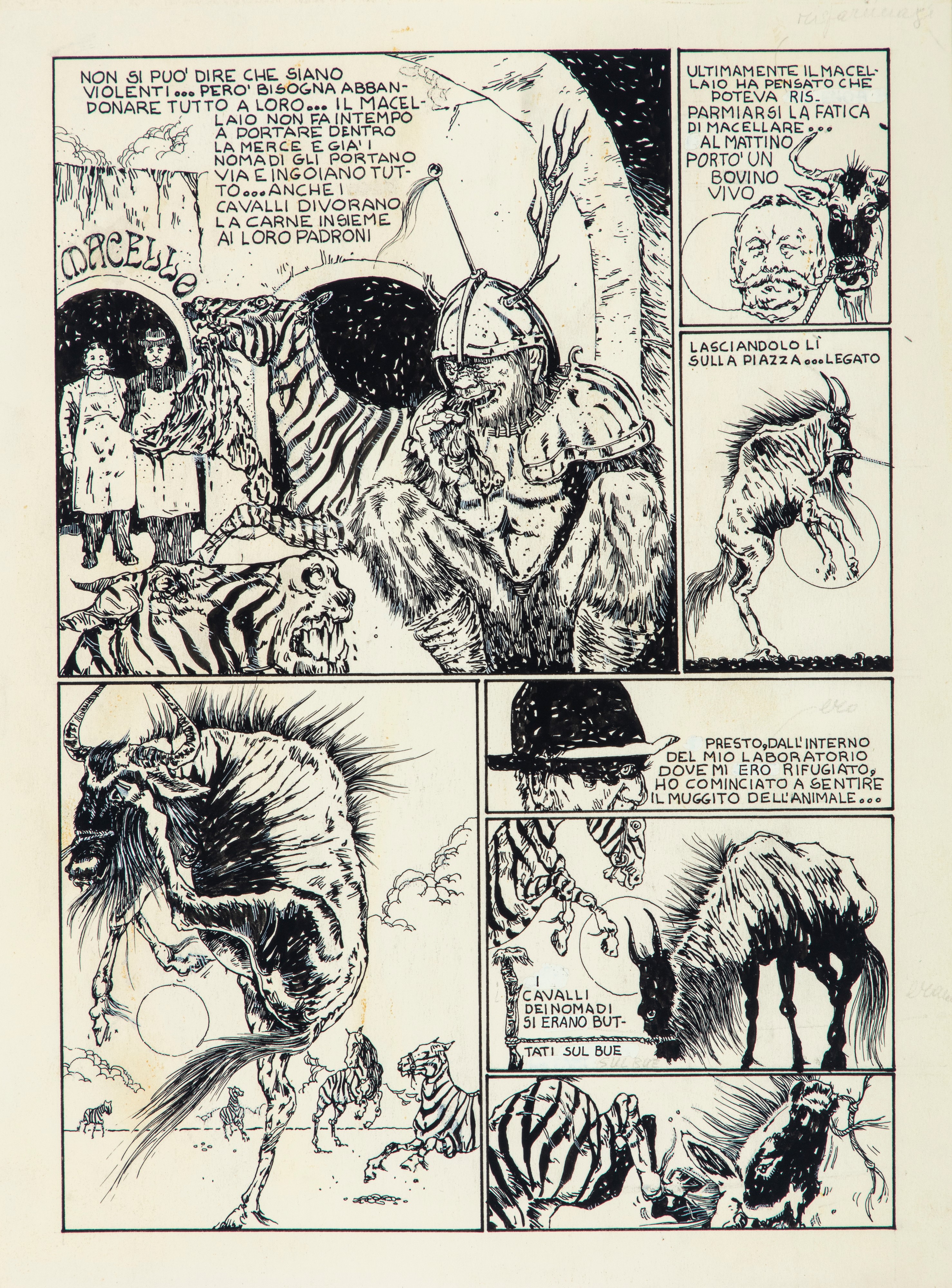 Complete story composed of 3 original comic arts made by Madaudo for "Una invasione", transposition of the famous story by Franz Kafka published in the pages of the magazine Sgt. Kirk n. 42 of 1975.