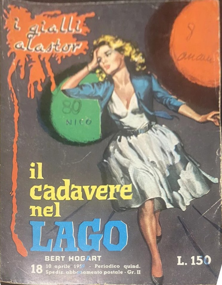 Original cover made by Biffignandi for "The Corpse in the Lake" by Bert Hogart, published in the I Gialli Alastor series n. 18 in 1958. Slight dent in the upper left corner.