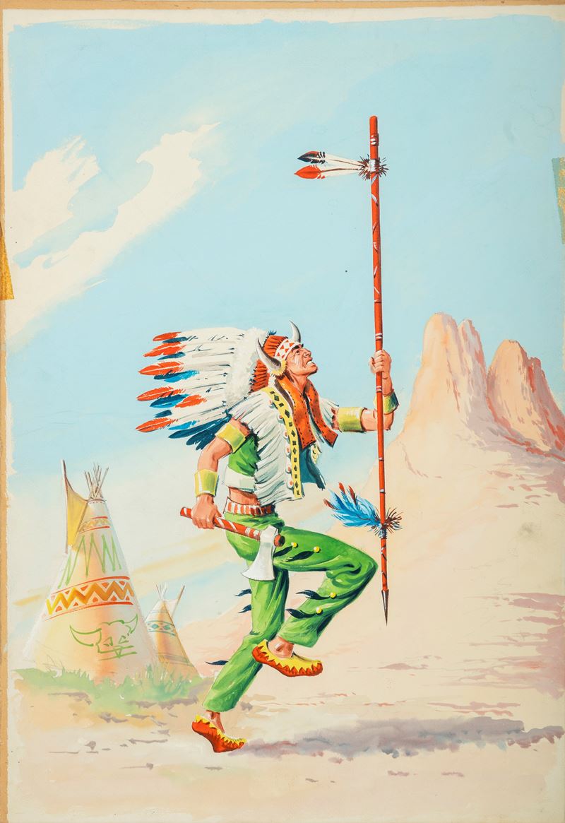 Pair of 2 original covers created for W. Flowe's novels "Sitting Bull's Axe" and "Cochise Chief of the Ciricaua", published by Capitol in 1958.