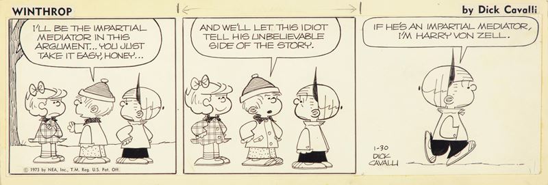 Daily comic strip from January 30, 1973, for "Winthrop." Signed and dated.