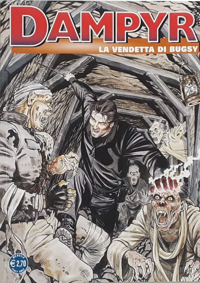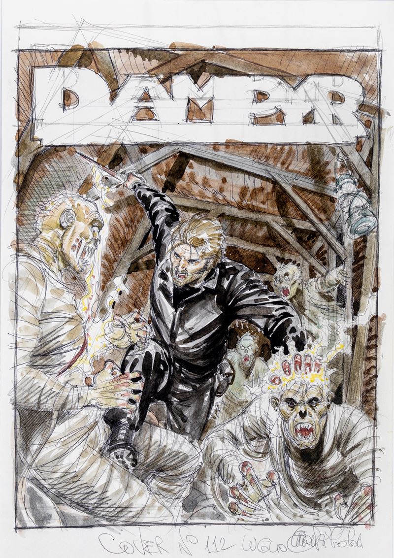 Original cover made by Riboldi for "La vendetta di Bugsy," published in Dampyr n. 112 by Bonelli in 2009. The preliminary drawing is attached. Signed and dated.