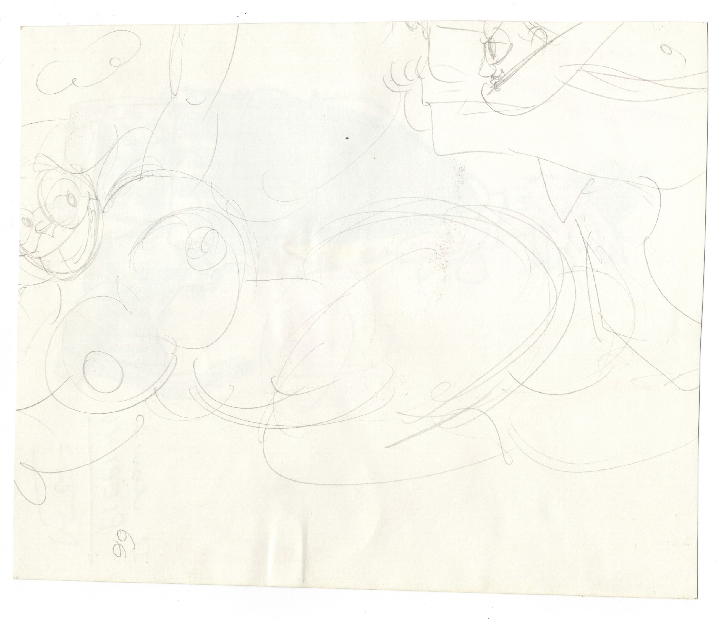 Original drawing made by Fellini in the early 1970s depicting the clown Pierino, one of the protagonists of the film "I clowns". This work was published in the volume "Federico Fellini: La mia Rimini" by Guaraldi Editore in 2003. The most immediate expression of Federico Fellini's extraordinary imagination has always been drawing, both during the preparation of his films and in those more intimate, carefree, and therefore joyful moments in which, having released all his creative energy, he immersed himself in the more relaxing and liberating ones that drawing suggested to him. << Perhaps I've already said that it's a way to begin to look the film in the face, to see what kind of person it is, the attempt to capture something, however tiny, bordering on insignificance, but which seems to me to still have something to do with the film, and subtly speaks to me of him. >> On the back is a pencil sketch depicting a woman and a self-portrait of Fellini. Signed.