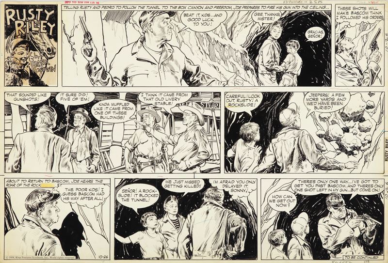 Sunday comic strip from October 26, 1958 fot "Rusty Riley" . Slight crease in the upper right corner.