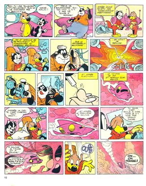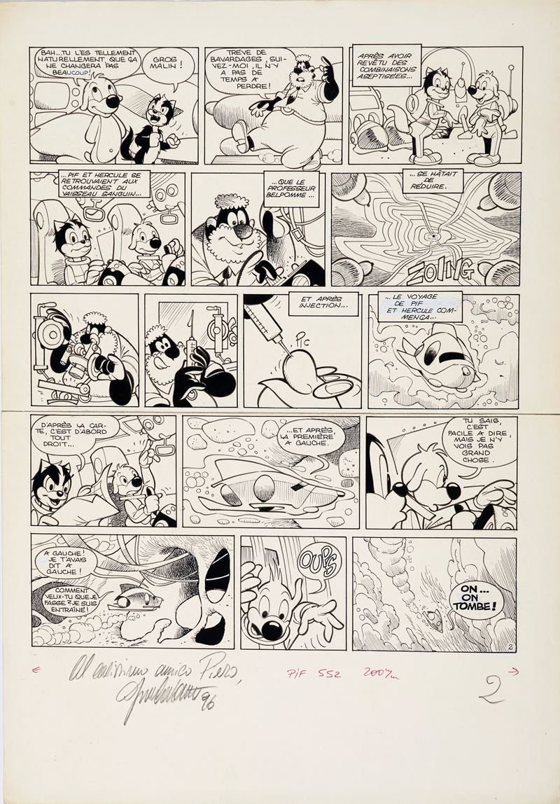Original comic art made by Cavazzano for "L'odyssée de l'Illiaque," first published in the French magazine Pif Gadget n. 552 on page 2, 1979. On two panels. Signed, dated, and dedicated.