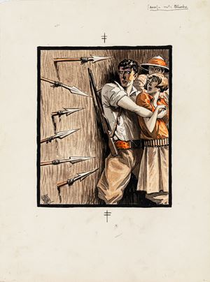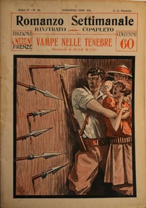 Original cover made by Toppi for the novel "Vampe nelle tenebre" by Aldo Randi, published in the Romanzo Settimanale series by Nerbini in 1929. Pinholes in the margins. Signed.