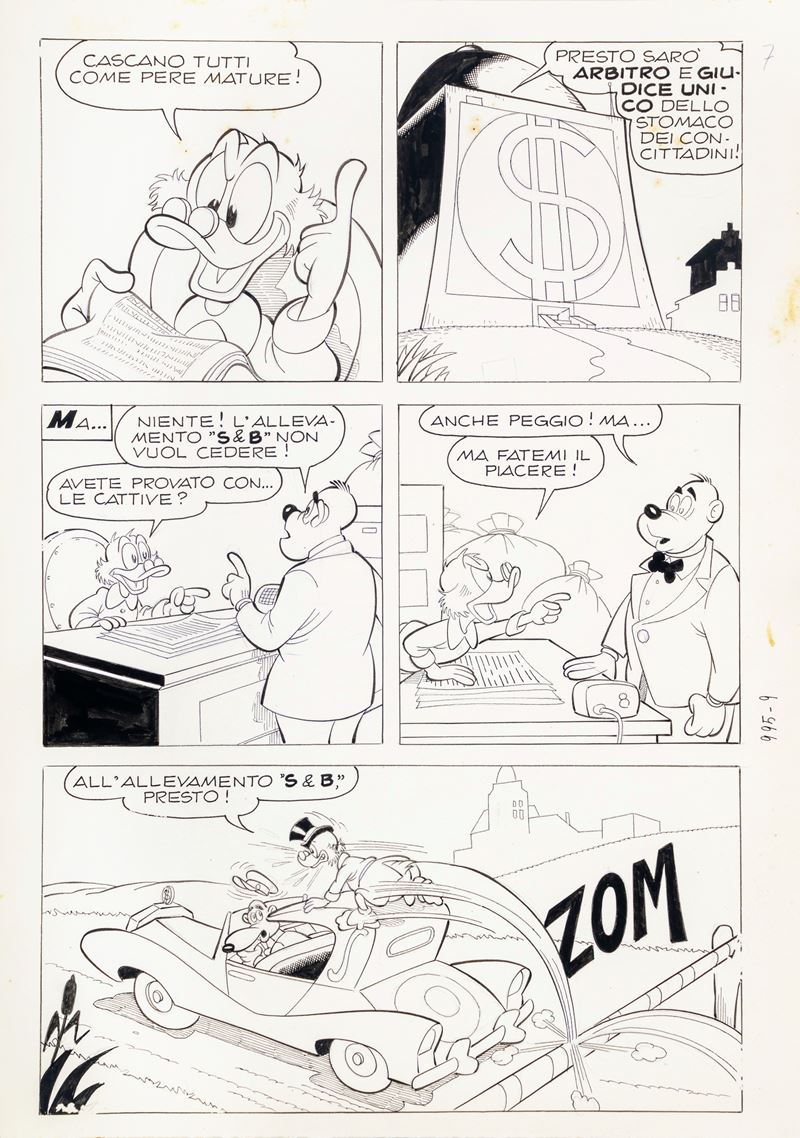 Original comic art made by Chierchini for "Uncle Scrooge and Brenno's Scales," published in Topolino n. 995 on page 7, December 1974. Slight creases.