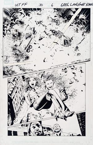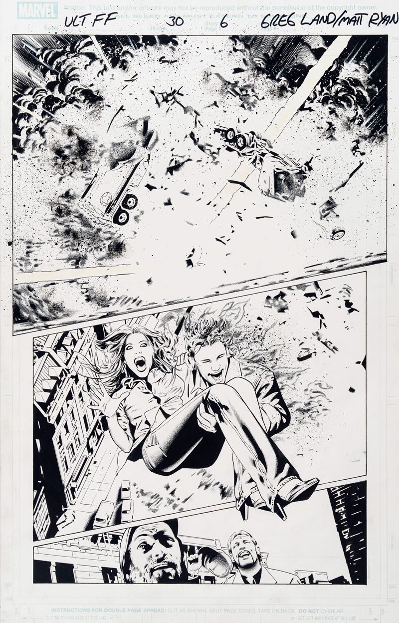 Original comic art made by Land for "Frightful," published in Ultimate Fantastic Four n. 30 on page 6 by Marvel in 2006.