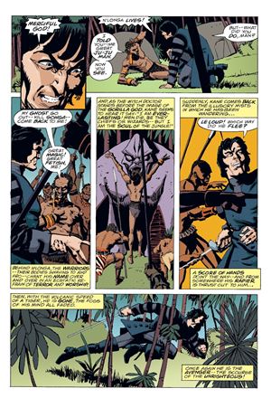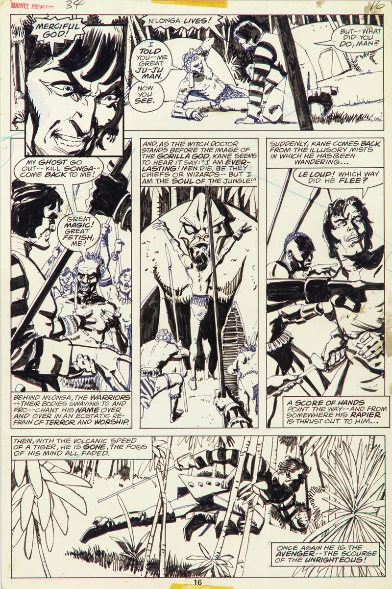 Original comic art made by Chaykin for "Fangs of the Gorilla God!", published in Marvel Premiere n. 34 on page 16 by Marvel 1977. Slight crease in the upper left corner.