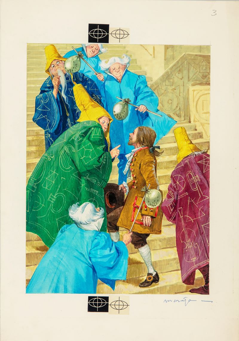 Original illustration made by Maraja for the novel "Gulliver's Travels" by Jonathan Swift, published by Ed. Accademia in 1974. Signed.