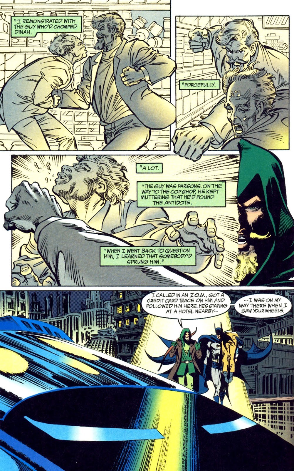 Original comic art made by Netzer for the volume "Batman/Green Arrow: The Poison Tomorrow", published on page 6 by DC 1992.