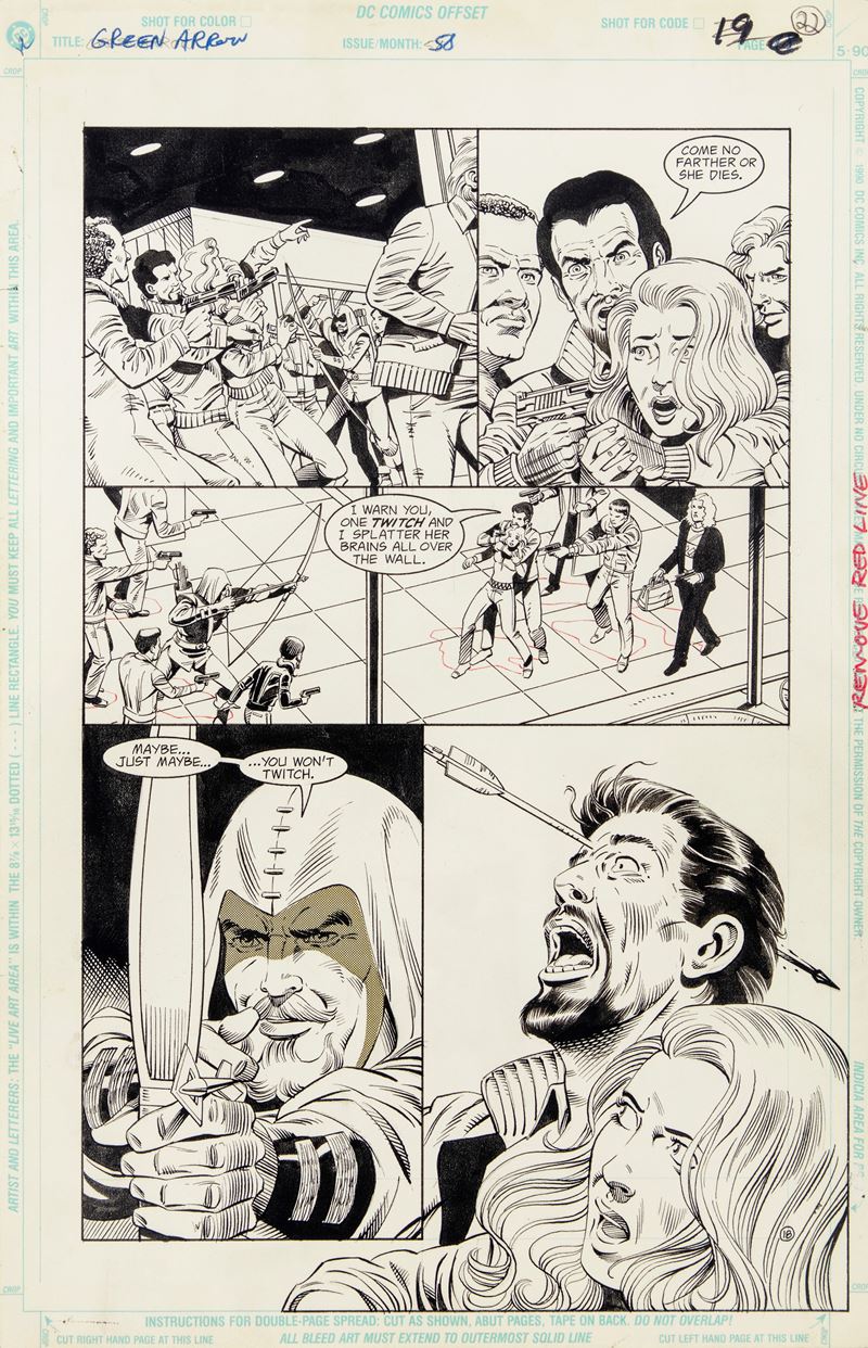 Original comic art made by Hoberg for "And Not a Drop To Drink," published in Green Arrow n. 58 on page 18 by DC in 1992.