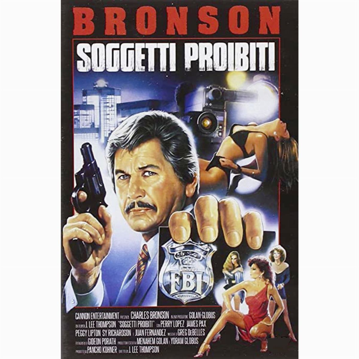 Original artwork made by Sciotti for the movie poster of "Kinjite: Forbidden Subjects", directed by J. Lee Thompson with Charles Bronson, Perry Lopez and Peggy Lipton in 1989. Signed.