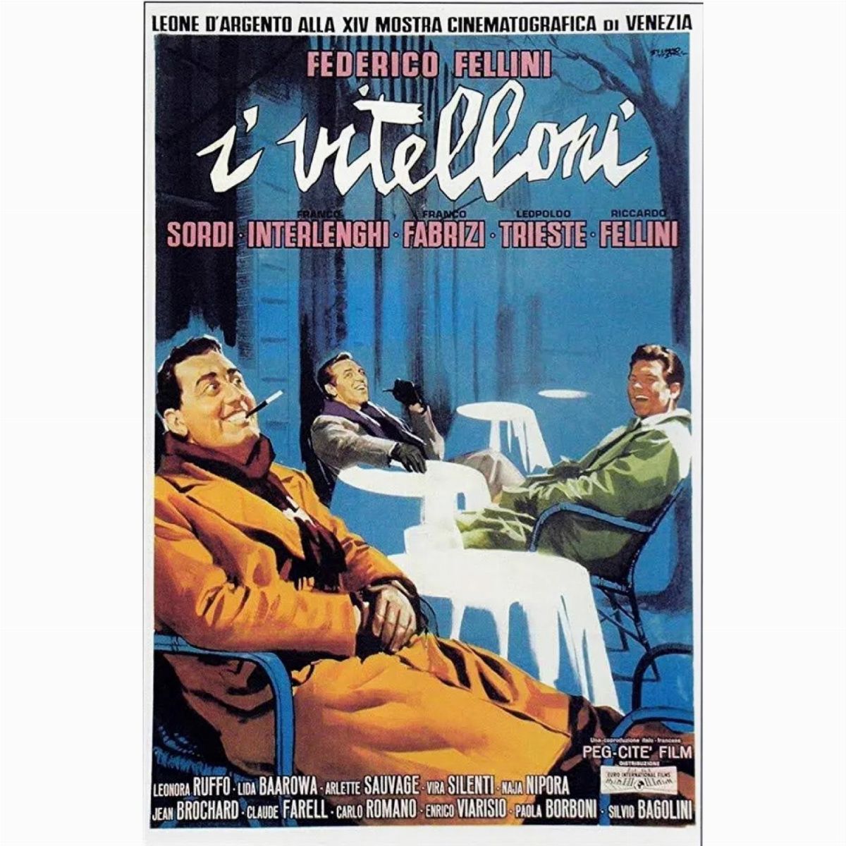 Preliminary sketch made by Giuliano Nistri for the movie poster of "I vitelloni", directed by Federico Fellini with Alberto Sordi, Franco Fabrizi and Leopoldo Trieste in 1953. Artwork published in the magazine Best Movie n. 11 on page 16 in November 2021. Signed.