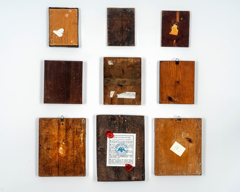 The subjects include: the Madonna of Kazan, the Mother of God of Tenderness, the Descent of Christ into Hades, the Mother of God “Joy of All Who Sorrow”, the Mother of God “Star of the Heavens”, two holy bishops, Saint Nicholas the Wonderworker with silver riza, the Prophet Elijah taken up to heaven, and the Risen Christ with Mary Magdalene.