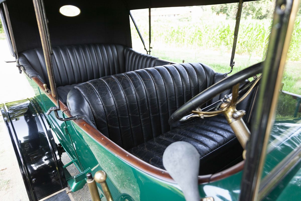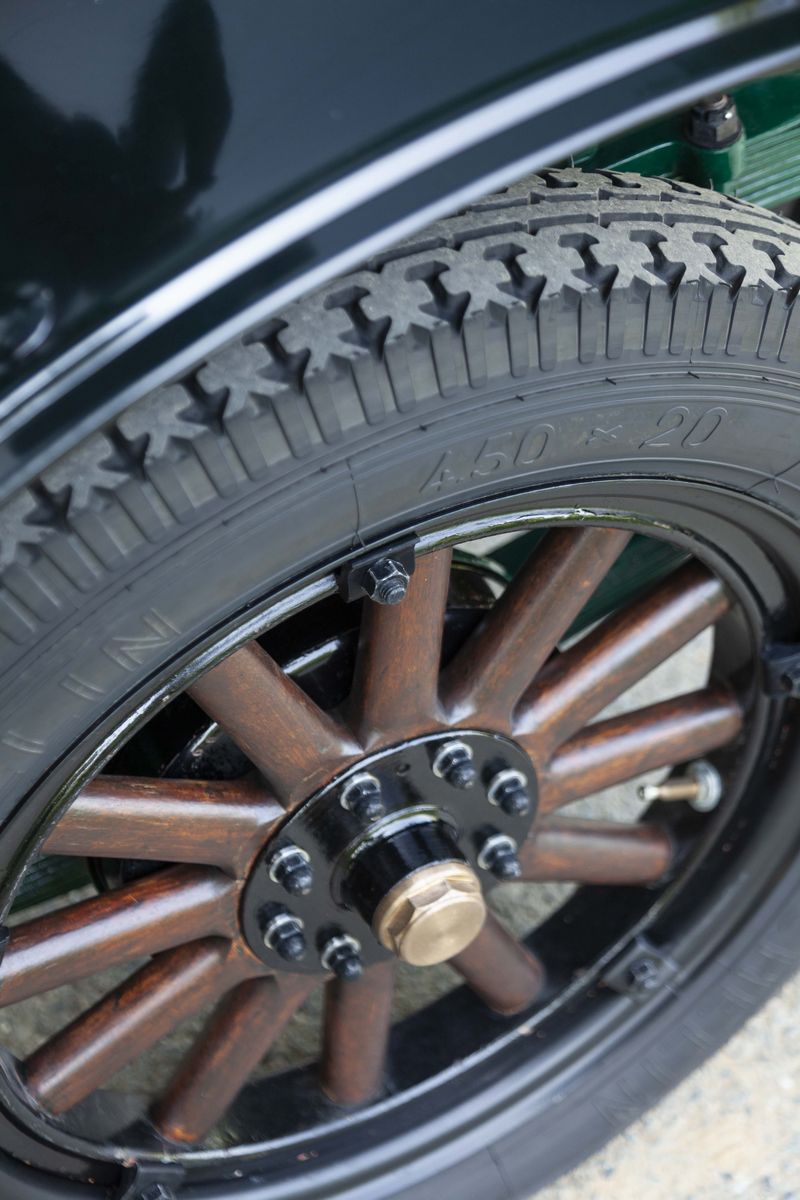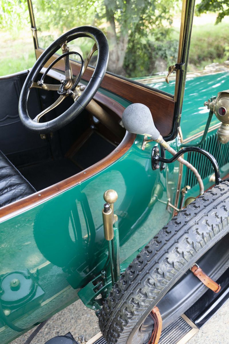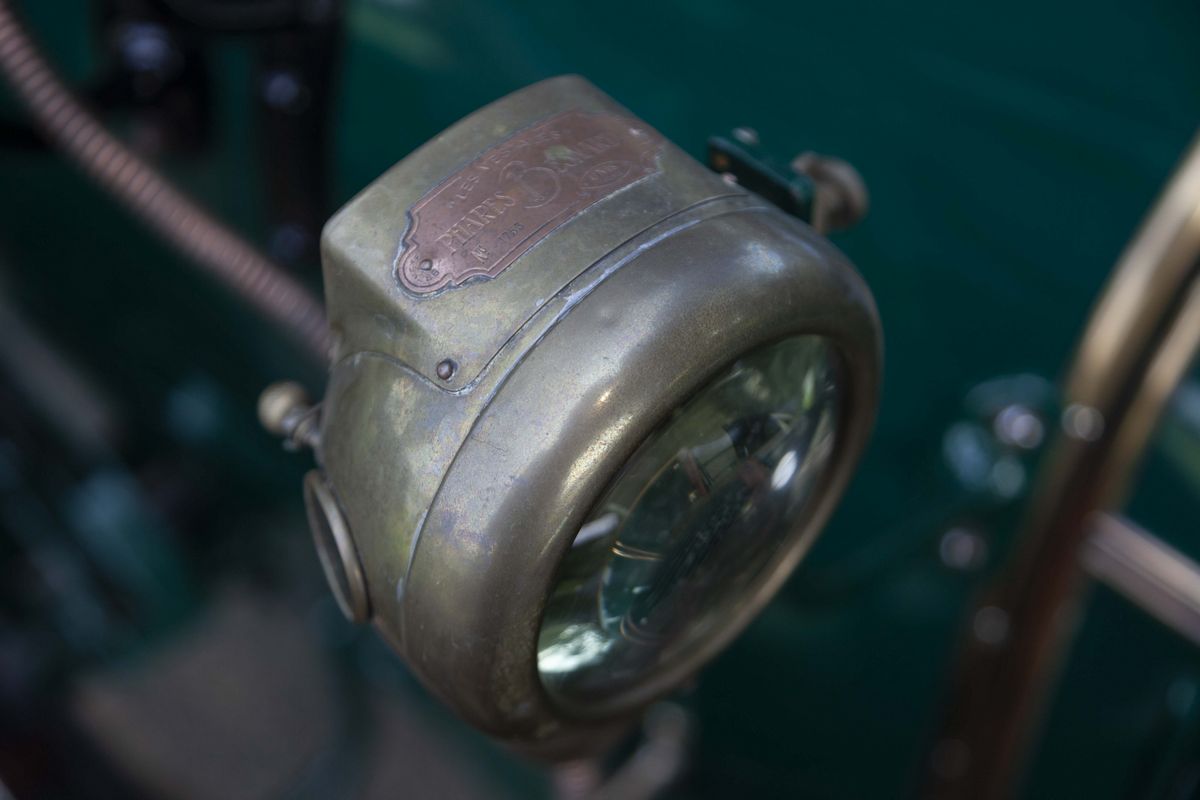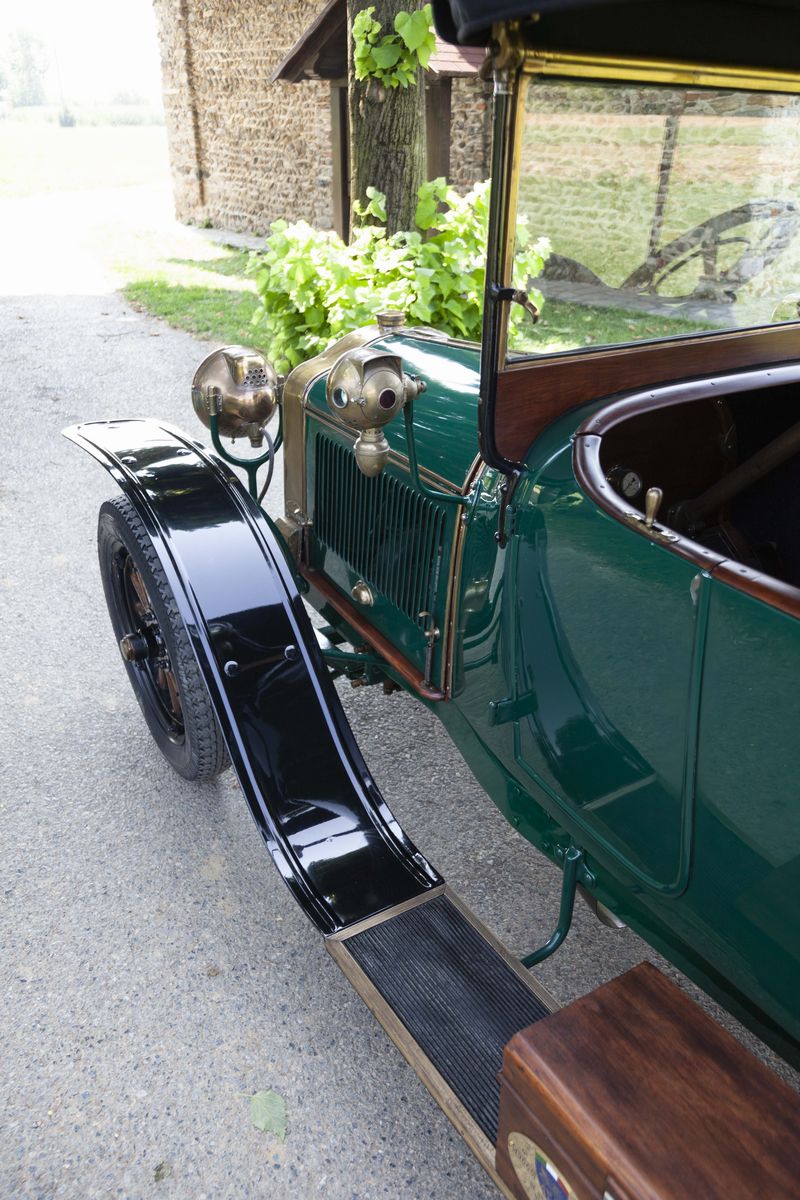 The De Dion-Bouton DY, chassis no. 189 is a 1913 car. In that very year, De Dion-Bouton was probably the largest vehicles manufacturer worldwide and, gradually, the customers showed to desire bigger and more refined cars. Only one De Dion-Bouton passenger car used a 2-cylinder engine yet, all the others were mostly four-cylinders in a wide displacement range, plus a V-8. In 1913, the 4 cylinder models were the following: DX, DW4, DY, DZ/EA, EB/EB2/EI. The De Dion-Bouton DY, chassis no. 189 is a Torpedo bodied car, powered by a 2,4 litre four-cylinder side valve engine. It’s a right-hand drive, as every motor cars in those years. Finished in green with black fenders, has the original varnished wooden rims and correct high quality reproduction Michelin tyres. It has black leather interiors and a new black cloth top. Suspensions are live axle front and rear with semi-elliptical front springs, 3/4 elliptical rear springs and drum rear wheel brakes. No front brakes. The car is still fitted with its rare original Blériot acetylene headlights. In 1897, Louis Blériot, a pioneer of the French aviation and the first flyer of the English Channel, created a company that produced lamps for cars. His first patent, filed in 1897, concerns the creation of acetylene headlights. With this totally new lighting, night driving became actually possible for the first time. Blériot and his team constantly improved their products and diversified their range with new, often revolutionary, patents. This attention to detail perfectly matches the De Dion-Bouton philosophy, which benefits from the results obtained to further enhance vehicle safety for its customers. The 1913 De Dion-Bouton DY, chassis no. 189, was completely restored over the years, starting in the 60s. The last restoration took place in 2008. The engine conforms to the original, by type and year. The bodywork has been completely repainted. The details are precious and correct, by year and by model: from the trumpet horn into the right-hand side, to the acetylene generator, to the external leather and wooden trunks. The interiors have been partially redone with materials similar to the original. On the dashboard, an optional watch of the era. The car is fitted with the original crank starter, but also with an electric starter not foreseen at the time. As an expert told: “The performance will not be sparkling, but it should go on doing so forever”. A car known for the qualities of its engine, an example of a fabled marque from the earliest days of the motorisation, an elegant and restored tourer with versatile Torpedo body. A rewarding purchase under the most profitable period on the market, to buy an "ancêtre".