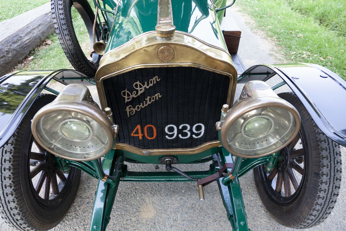The company was founded in Puteaux by Jules-Albert De Dion, by George Bouton and by his brother-in-law Charles Trépardoux. They started building steam-powered cars in 1883. Ten years later, steam tractors were produced, designed to tow carriages and using an innovative rear suspension design, that would become famous as "De Dion axle", where the function of direction and transmission of the axis of the wheel are separated. This system was futuristic and effective, especially in sports and is still used on some vehicles. Bouton was later responsible for introducing the spark plug as we know it today, with the threaded stem, easy to disassemble. In 1893, de Dion became convinced that the future was in the internal combustion engine. Trépardoux was not convinced and left the company. In 1895 the company began to produce petrol cars with a small single-cylinder engine. A new small single cylinder engine of 137 cc was built which turned at the unprecedented speed of 3000 rpm and had electric ignition. It was applied to a chassis based on a three-wheeled bicycle. The company soon started producing engines for other companies. Finally, over 150 other companies used their engines. In 1898 the three-wheeler was joined by a four-wheel model and in 1900 by a "vis-a-vis" carriage with the engine under the seat and rear-wheel drive via a two-speed gearbox: it was the "Populaire" model. In 1900, De Dion-Bouton was the world's largest automaker, producing 400 cars and 3200 engines. A factory was also opened in Brooklyn, New York and, thanks to De Dion-Bouton, the first road map was published. By 1901 the De Dion-Bouton Company was firmly established as both a successful innovator and a manufacturer of high quality engines and motor vehicles in Europe. The engine was placed front in 1903 and a reverse gear also appeared. Multi-cylinder models were added that year with the two-cylinder 1728 cc Type S, followed in 1904 by the four-cylinder 2545 cc. Type AD. The cars also became more “conventional”, with the radiator placed on the front of the engine and the clutch control changed from a lever to a pedal. By the end of 1904, De Dion-Bouton had established an enviable reputation for the performance of its single and twin-cylinder engines, ignition systems and transmission, coupled with a robust lightweight chassis suitable for a wide range of two and four-seater coachwork. The motor car industry, barely a decade old, was going through a period of dynamic change with the early stages of mass production, improved machine tooling, different types of customers emerging, new commercial opportunities and rising competition. In the years from 1905 to 1914 De Dion-Bouton met these challenges with a mixture of innovation and entrepreneurship, launching eighty-two different types of vehicles in single, twin, four and eight-cylinder configurations. Many of De Dion-Bouton’s innovations were well established, reliable and effective. However, they were no longer ‘cutting edge’ or fashionable, and the company was acutely aware of the need to demonstrate a willingness to change, regardless of how difficult, expensive, and perhaps sometimes unnecessary, that might be. Whilst in 1904 the earl De Dion was convinced that the future prosperity of the Company lay in small vehicles and trucks, within four years the decision was taken to focus on four cylinder vehicles. By 1909 margins on single cylinder cars had been tightly squeezed and the success of the 12hp four cylinder Type BH had persuaded the management to cease production of the 10hp twin cylinders. The four cylinder cars had various engine configurations: small cars had engines of 10/12hp; mid-sized cars were equipped with 14/18hp power units, and the top of the range vehicles had 25/30hp options, adequate for formal landaulet coachwork. The growth of the commercial vehicle business for trucks and buses, for which the larger four cylinder engines were necessary, also offered improved economies of scale. Competition, especially in the small and mid-sized four cylinder sectors, was fierce and the large-scale operations of some American manufacturers, notably Ford, were already depressing showroom prices. The enticing opportunity, something which the earl De Dion generally found difficult to resist, was the launch of an eight cylinder engine, with its potential advantages of brand profile and strong margins. The De Dion-Bouton was the first with a mass-produced V8 engine, a unit with 35 horsepower, in 1910. Generally, the Company promoted a limited number of models every year, usually around five to seven. From 1910 to 1914 this number doubled. This abundance of passenger vehicle (88 models and 26 different engine configurations in 10 years), in addition to the commercial vehicle activity, was in stark contrast to many of their competitors, who undertook less development but sold more vehicles. During World War I the factory produced weapons components, armored vehicles and aircraft engines as well as cars and trucks. At the end of the war the company experienced a period of stagnation. Later, despite new models, very expensive, the production of touring cars ceased in 1932. Meanwhile, railway production had become much more important. A small amount of commercial vehicles was built until 1950. The brand disappeared definitively in 1968. De Dion-Bouton’s enthusiasts estimate that there are around 1,000 cars of the brand left in the world.