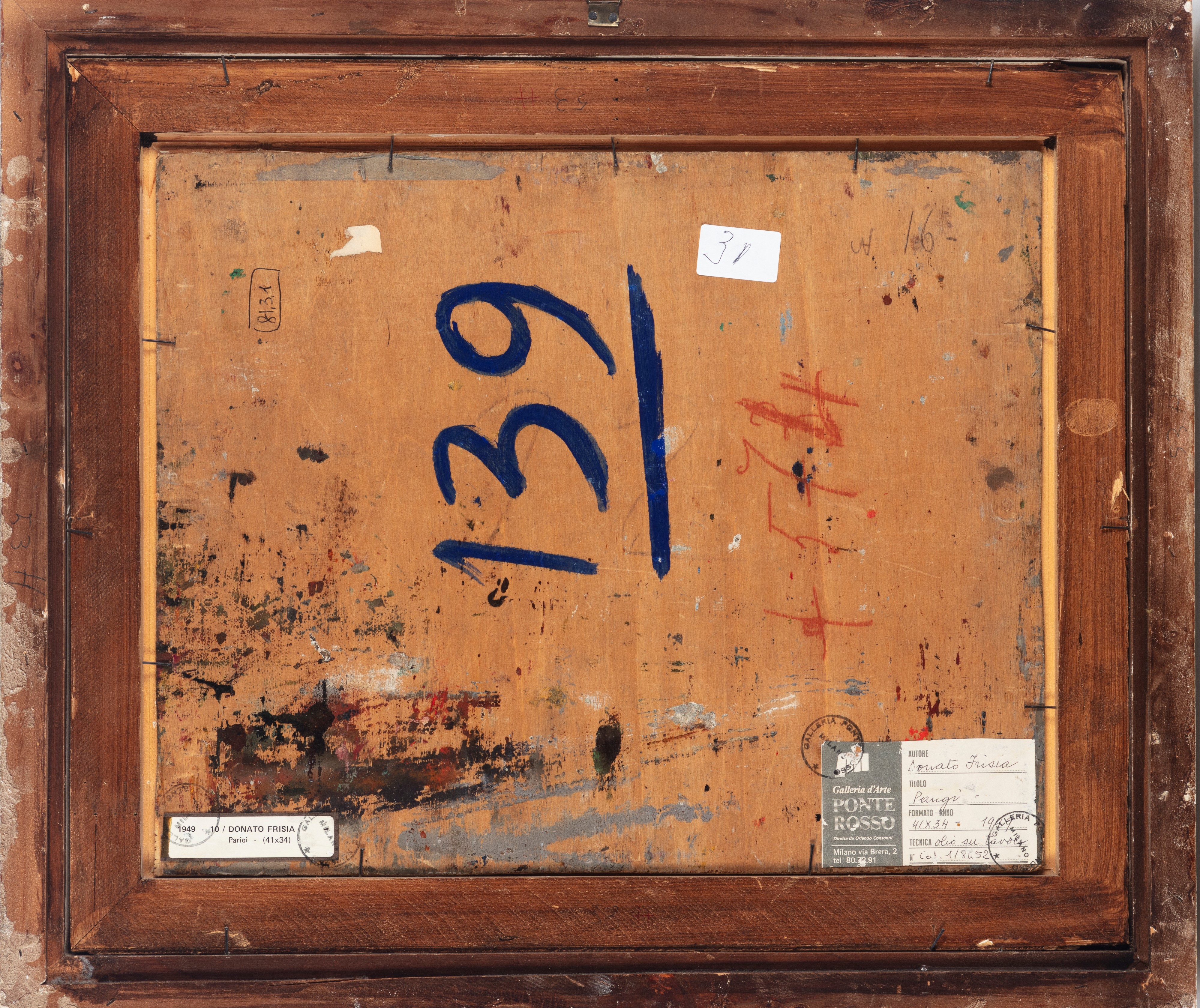 on the back, label and stamps of the Galleria d'Arte Ponte Rosso, Milan