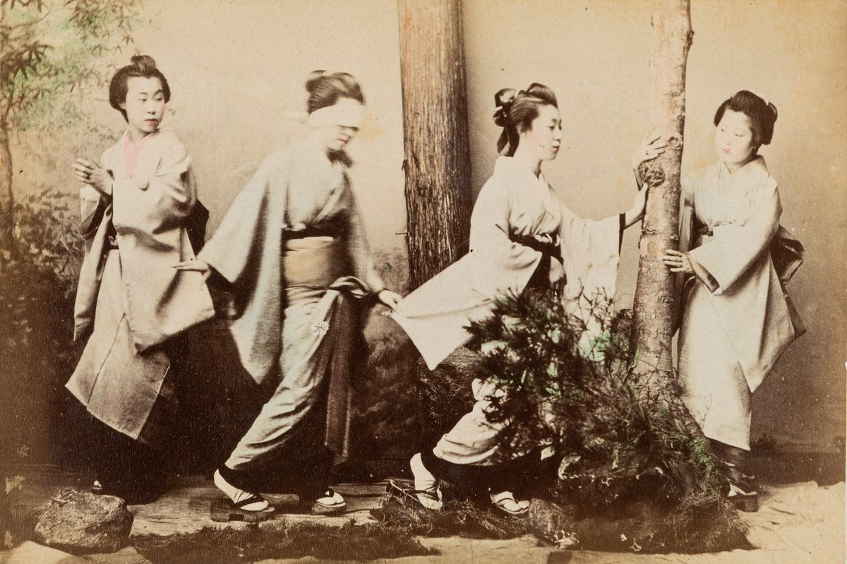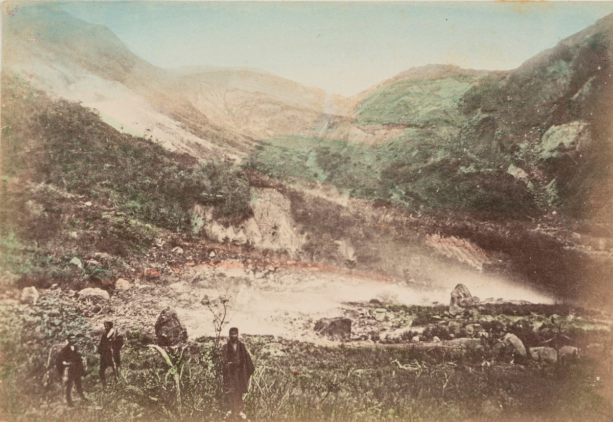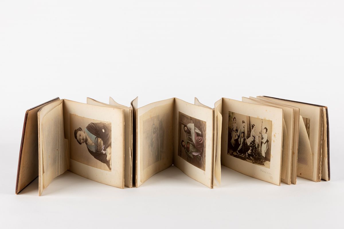 50 handcolored albumen prints mounted recto-verso on original cardboard, accordion binding