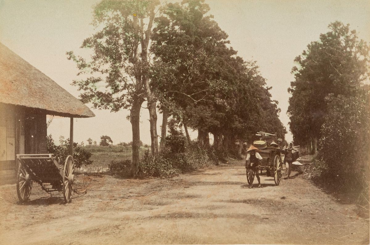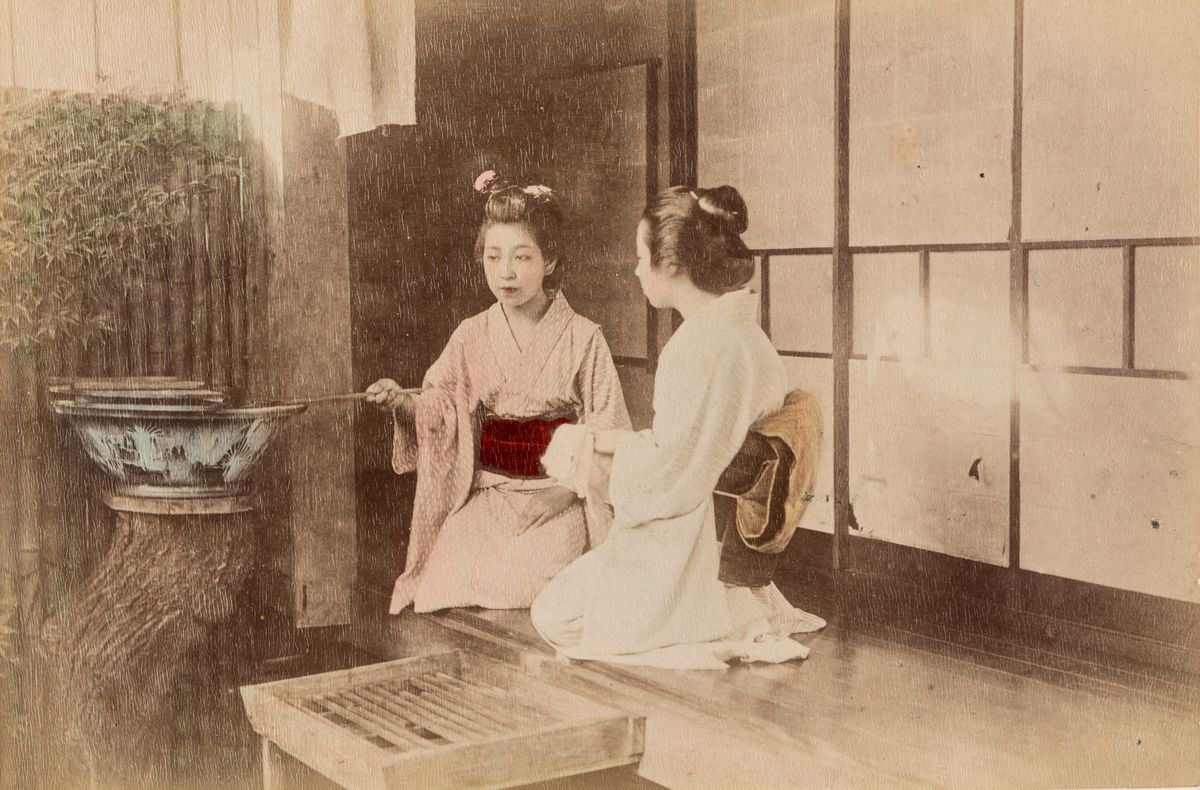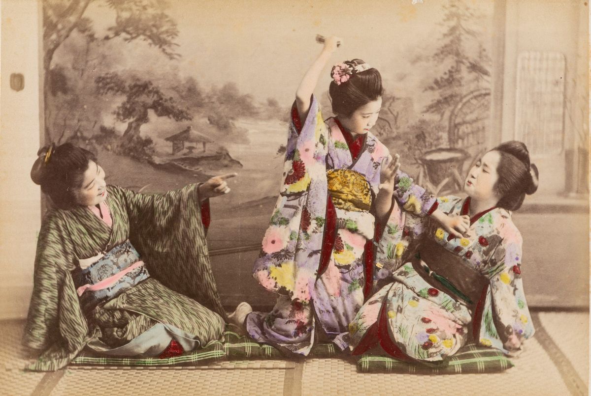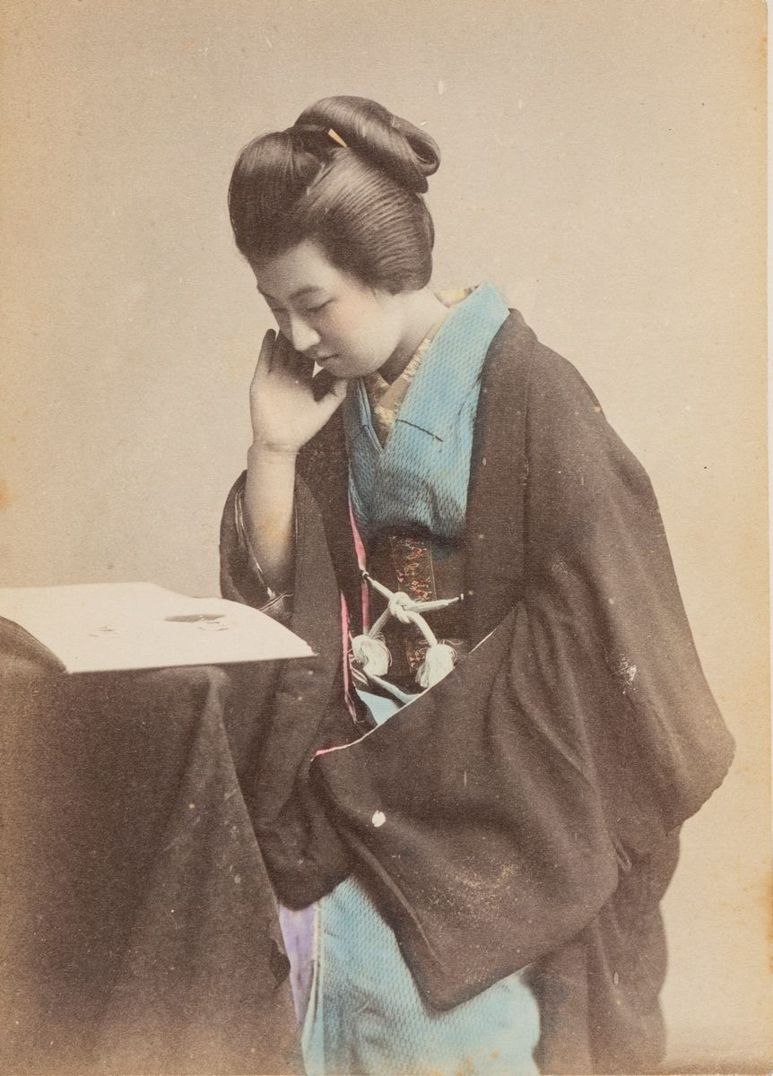 50 handcolored albumen prints mounted recto-verso on original cardboard, accordion binding