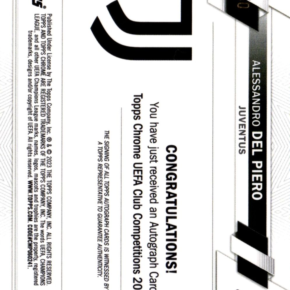 Card autographed by Alessandro Del Piero, produced and certified by Topps in 2022 with a print run of 101/150.