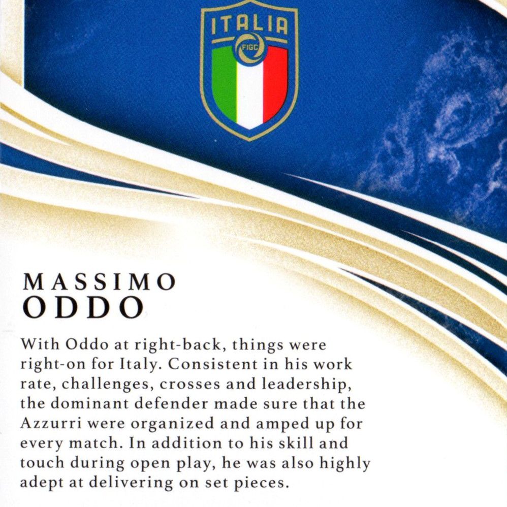 Card autographed by Massimo Oddo, produced and certified by Panini America with a print run of 99/99 in 2020.