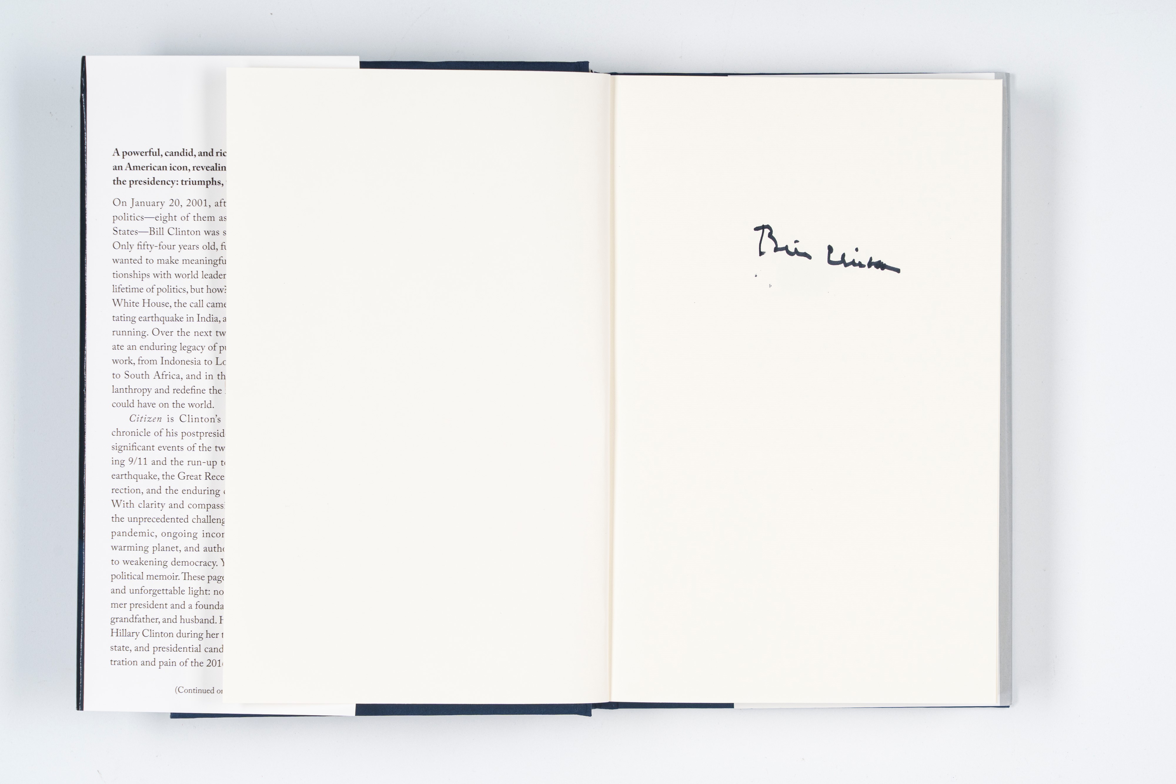 English-language book "Citizen" signed by former US President Bill Clinton. Bill Clinton served as the 42nd president of the United States from 1993 to 2001. At 46 years old when elected, he was the third-youngest president ever. His term began at the end of the Cold War, and he was the first president of the baby boomer generation. In 1998, he was engulfed in one of the biggest scandals in American history: he was accused of lying about his relationship with 22-year-old intern Monica Lewinsky, sparking a global media outcry that lasted for months.