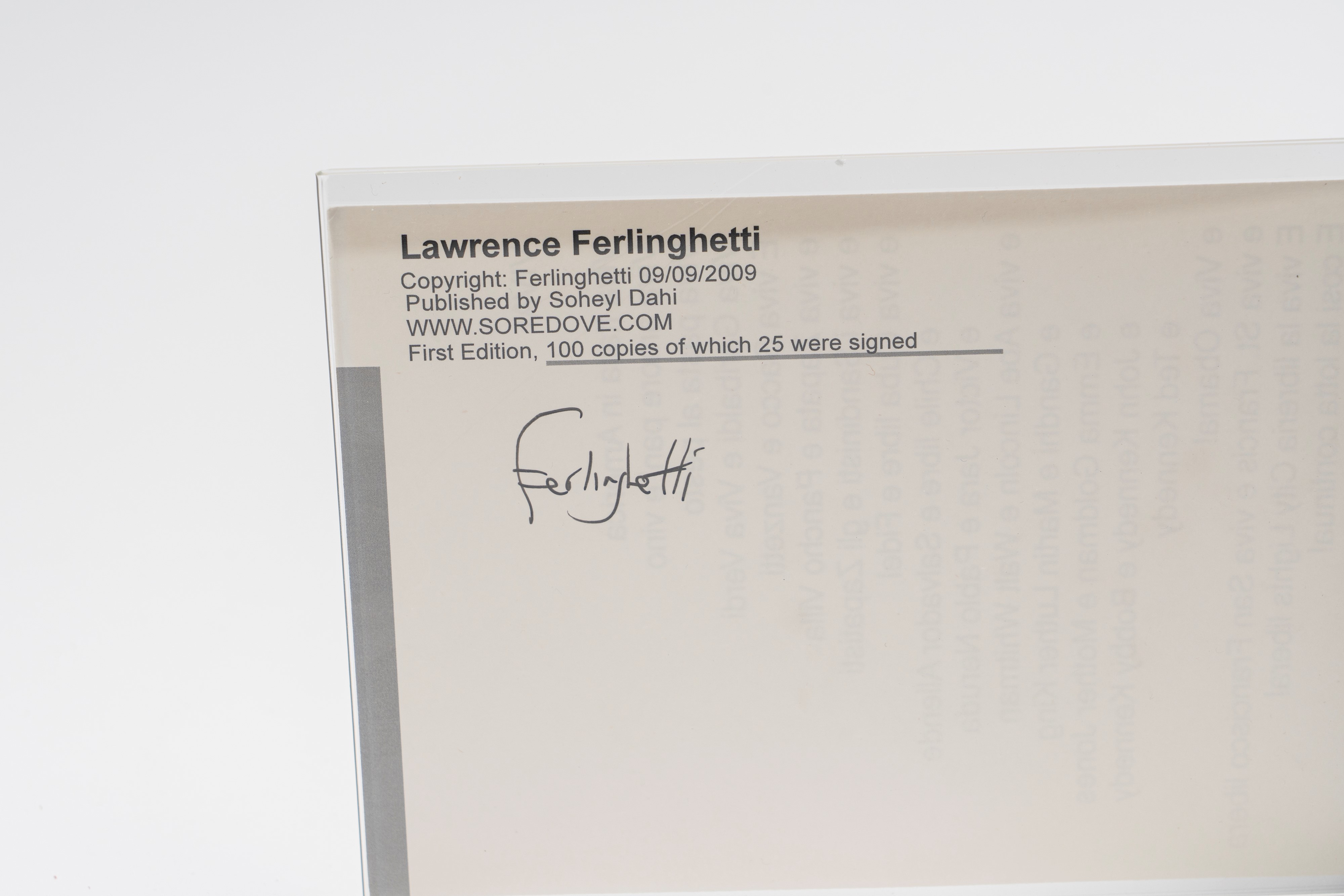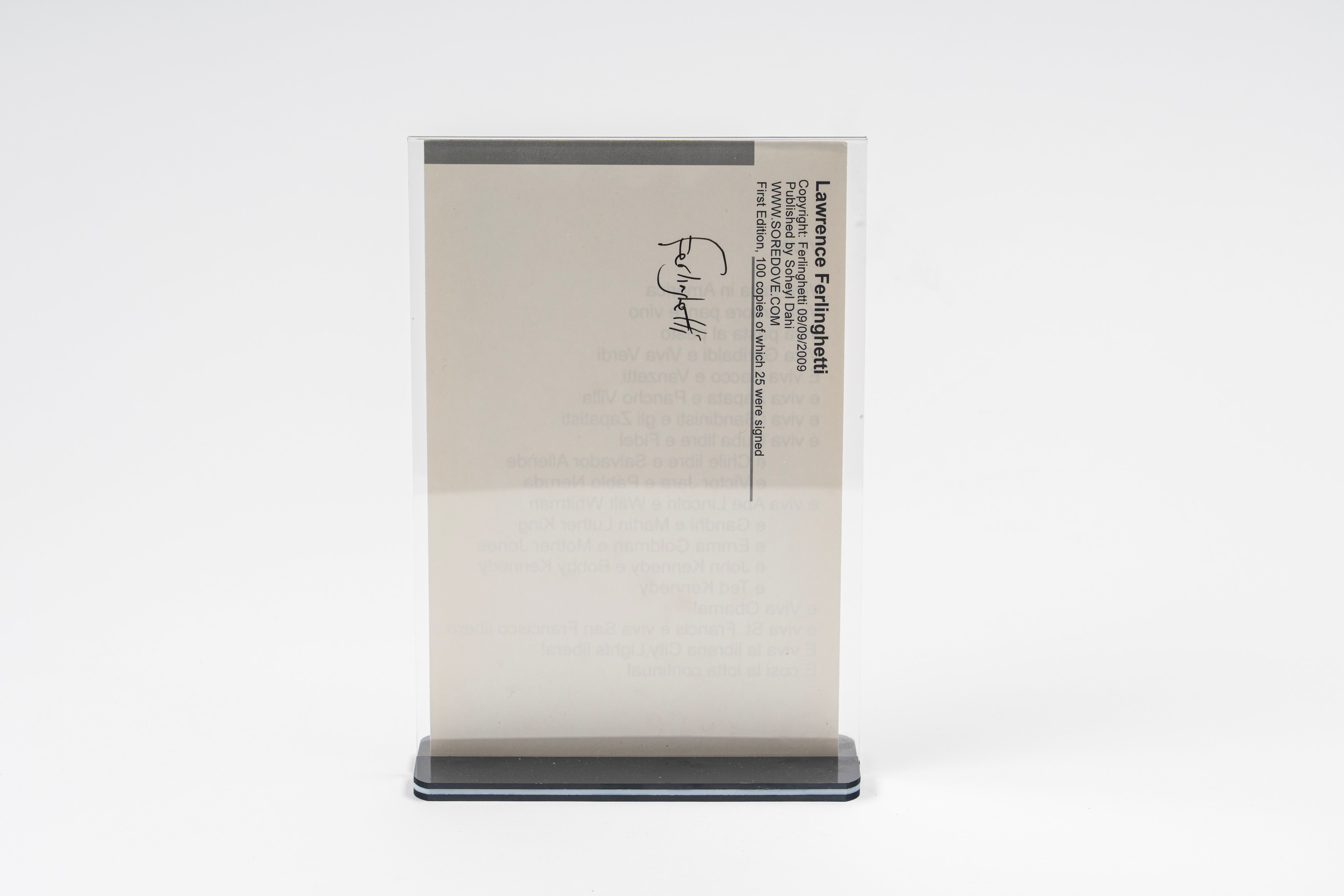 Lawrence Ferlinghetti – Signed Italian Poetry – Beat Generation – 15x20 cm – Framed
