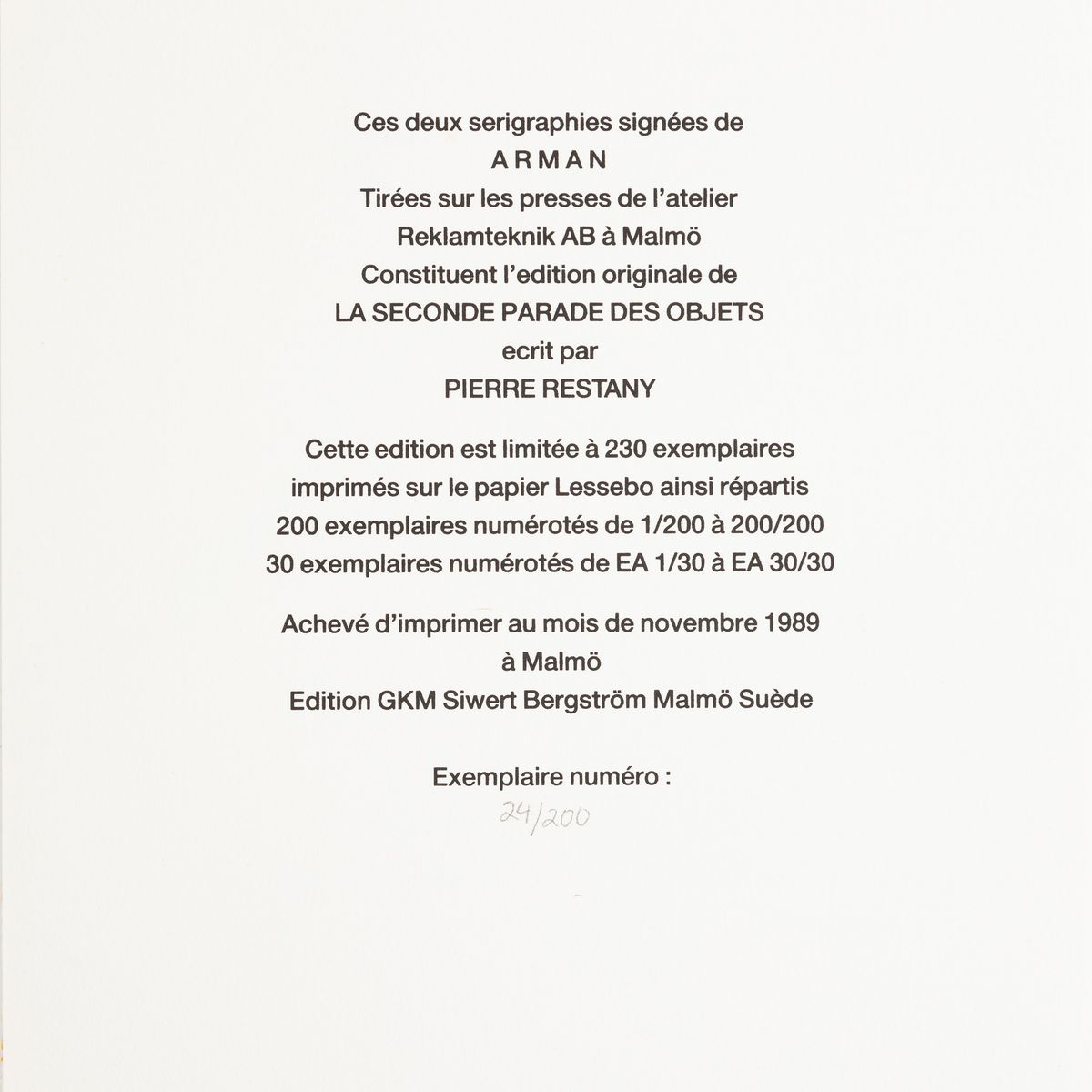 200 copies numbered from 1/200 to 200/200