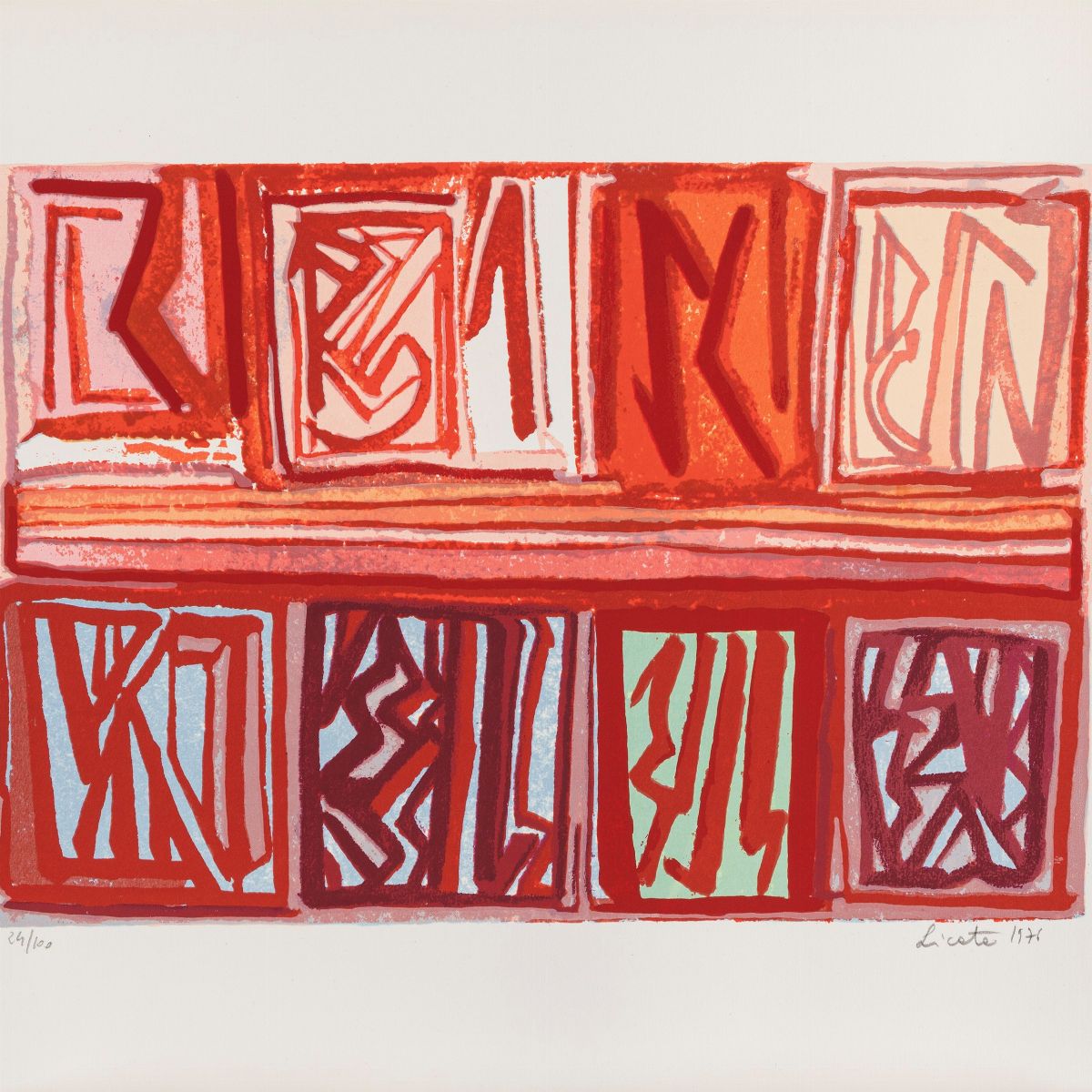 lot of 05 silk-screens on paper and wooden case with engraved and screen printed aluminum plate, ed.
