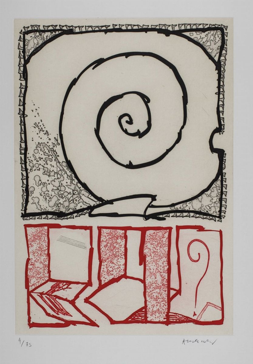 In basso a sinistra di ciascun foglio timbro a secco dello Stampatore Vigna Antoniniana, Roma (ad eccezione del foglio di Tàpies)