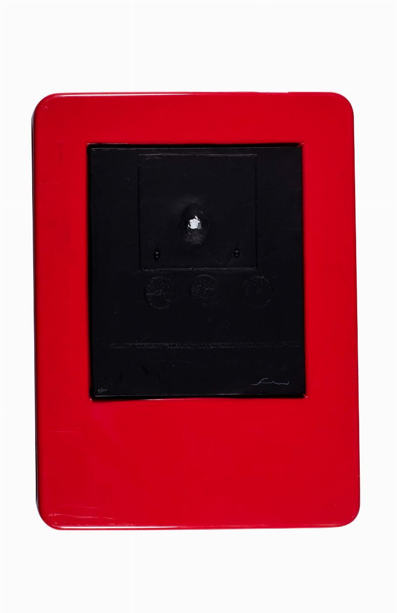 Sign engraved lower right on the original plastic folder (egg missing)