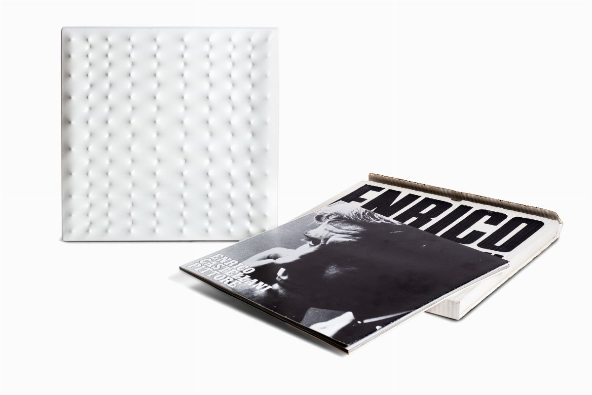 The multiple is accompanied by the volumeEnrico Castellani painter , with text by Vincenzo Agnetti and photos by Giorgio A. Colombo, Franco Angeli, Ugo Mulas and Uliano Lucas