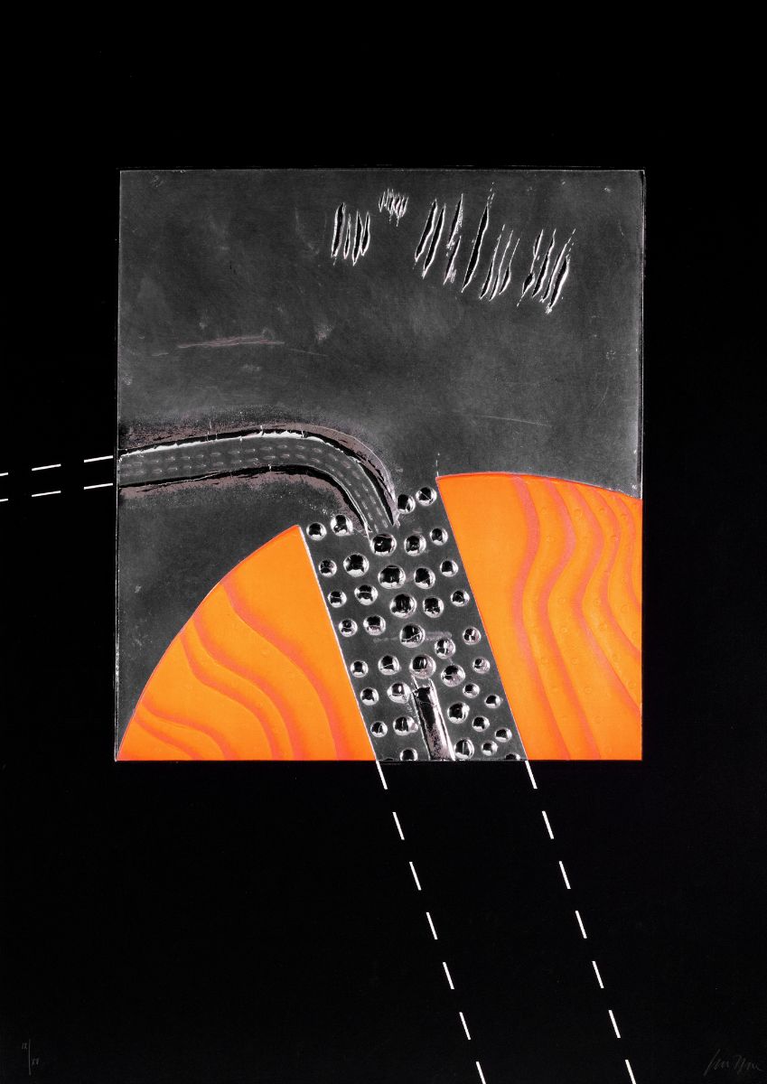 c) Orange composition, litography, chalcographyand metal collage, numberedIX / XV, 74.5 x 72 cm,(sheet size), (unframed), signature in pencil lower right