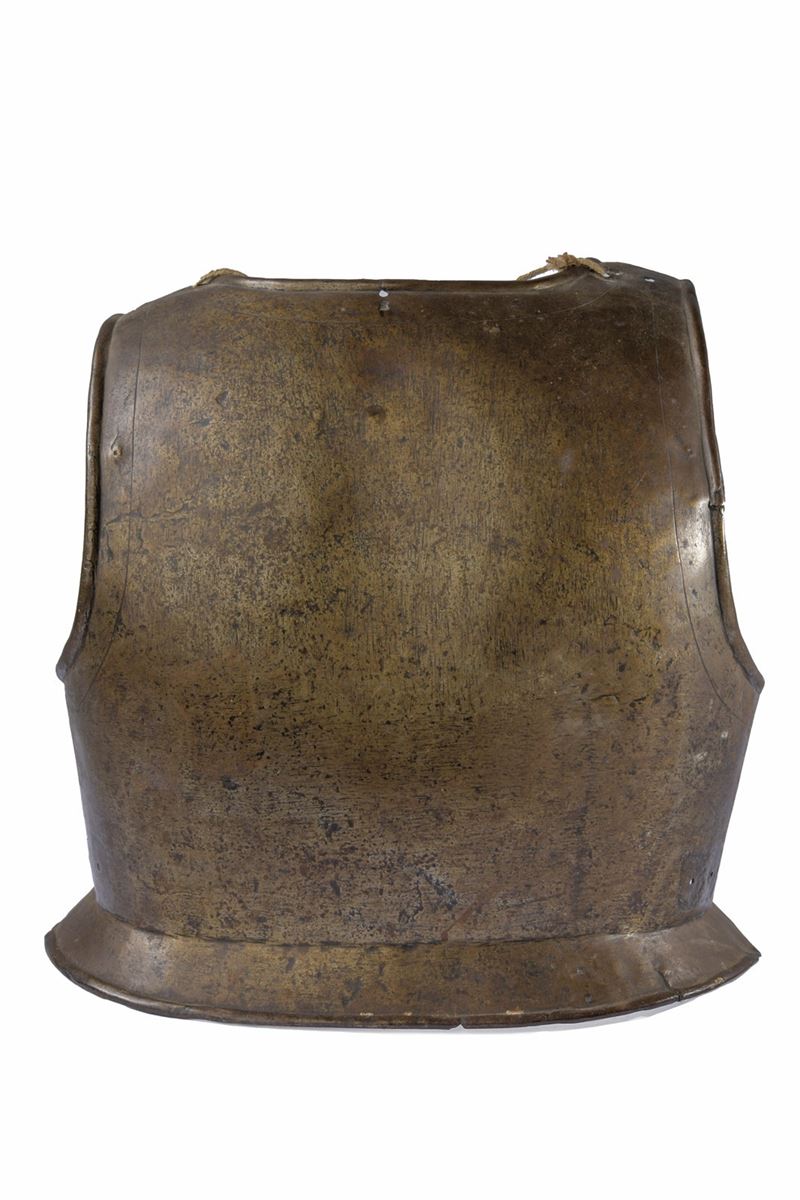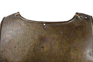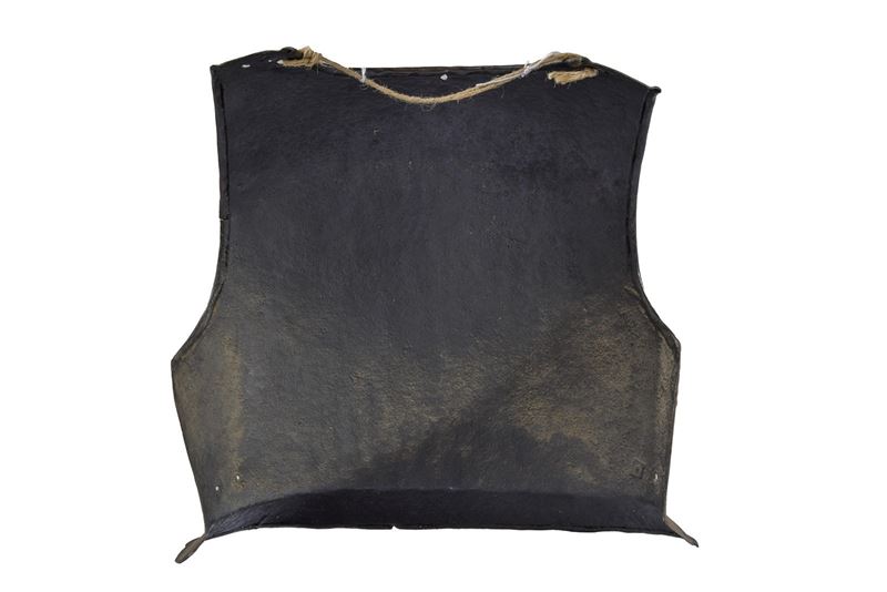 Made of iron, with hemmed neckline and gussets. With remains of a mark, outlined borders.