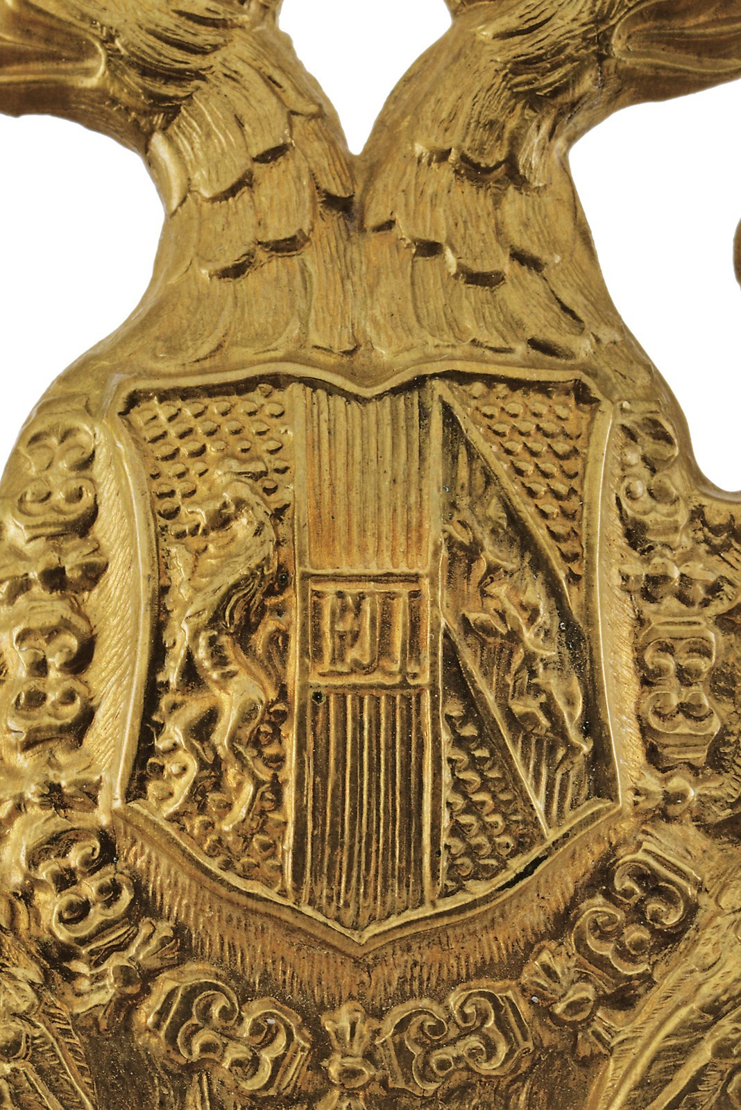 Made of embossed brass; one with minor damage to the crown. Both with original fastening rings.
