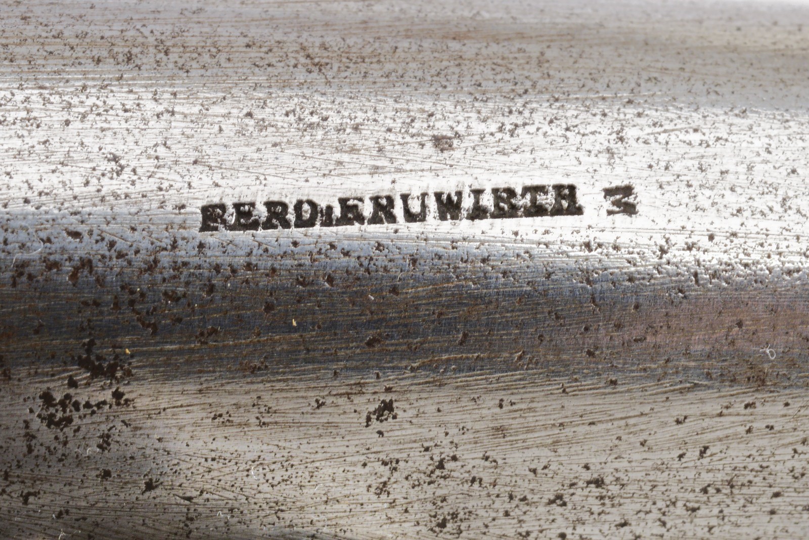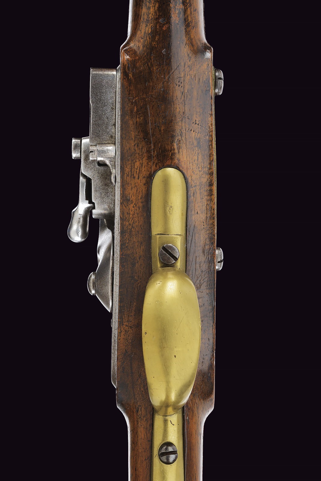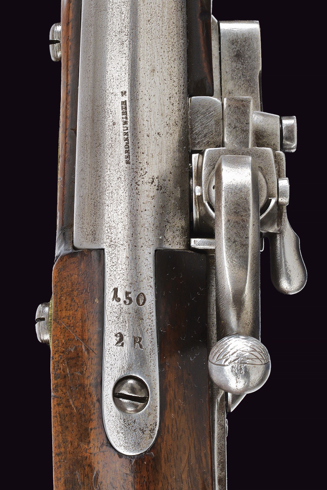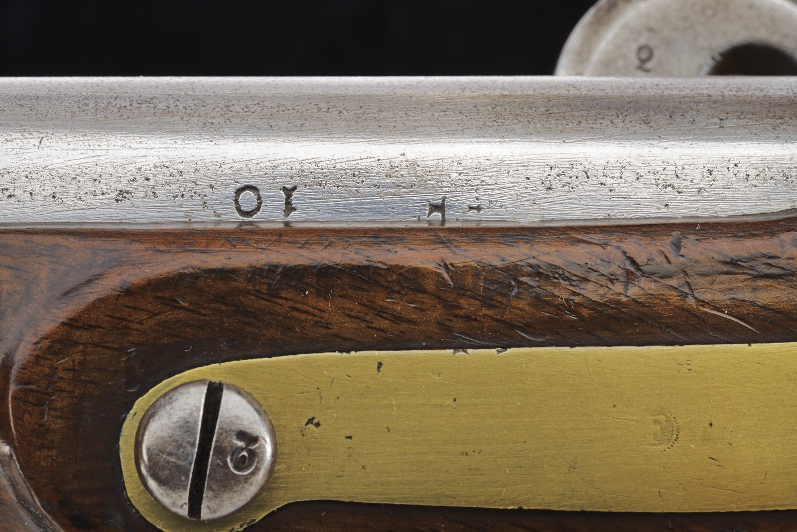 Smoothbore, round, 17 mm cal. barrel, square at the base marked "FERD FRUHWIRTH", "FF", "10" and featuring the imperial mark, foresight on the muzzle ring; rounded tang marked "150 2 R". Augustin-system lock dated "850" and featuring a double eagle, working mechanism with double-set triggers. Wooden full stock with brass mounts. This type of pistol was manufactured for only one year. Together with the bullet mold.