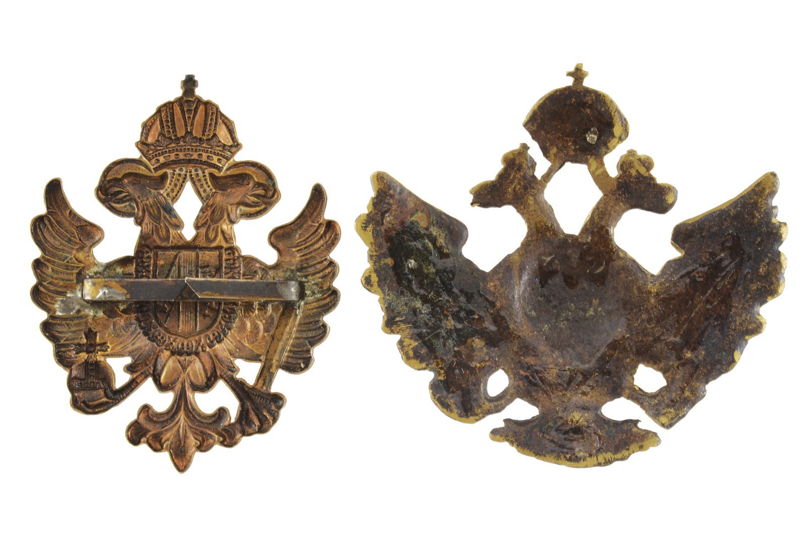 Lot of two small badges with imperial eagle, 19th Century