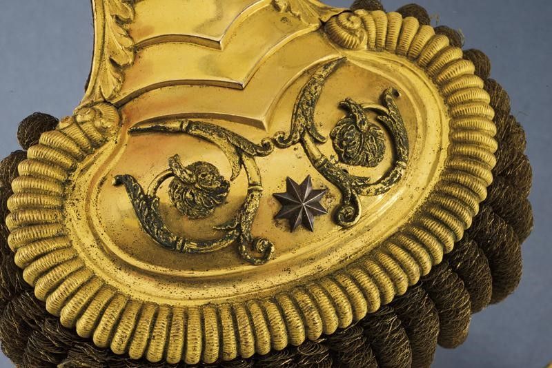 dating: 1860-70 provenance: Papal States, Made of gilded metal with a central star among floral decorations, border with wide bullions in gilded threads. Lined with fabric (missing parts). Very rare and of impressive size. length 17.5 cm.