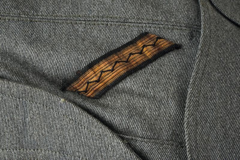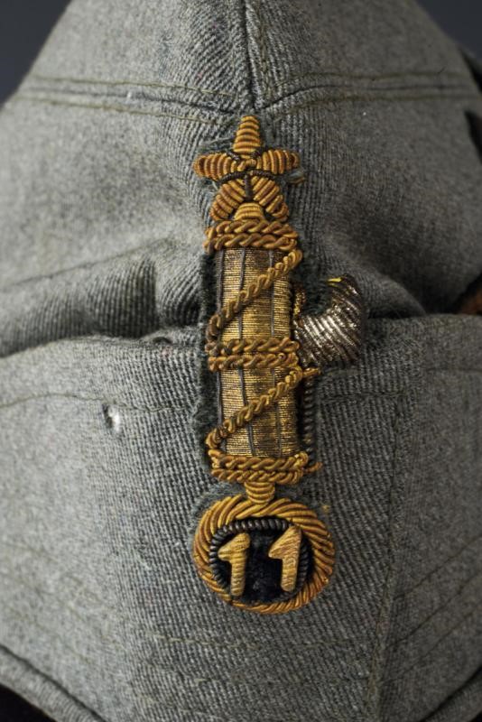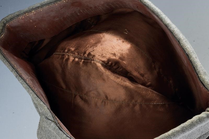 Made of grey fabric with threads ornament and with number "11". With leather sweat band and silk cap inside. Rare