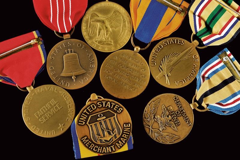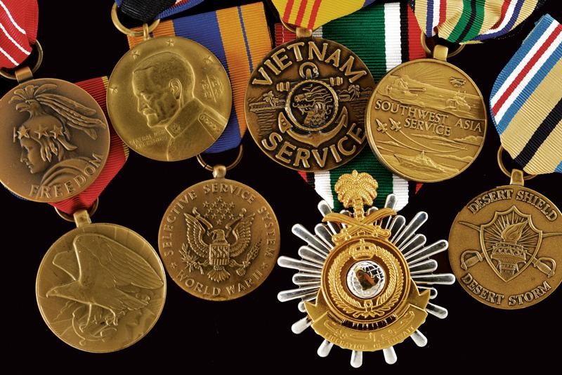 Medal of Freedom; Army of Occupation Medal; Liberation of Kuwait Medal; Southwest Asia Service Medal; Vietnam Service Medal; Desert Shield/Desert Storm Medal; Selective Service System WWII Medal; Faithful Service Medal.