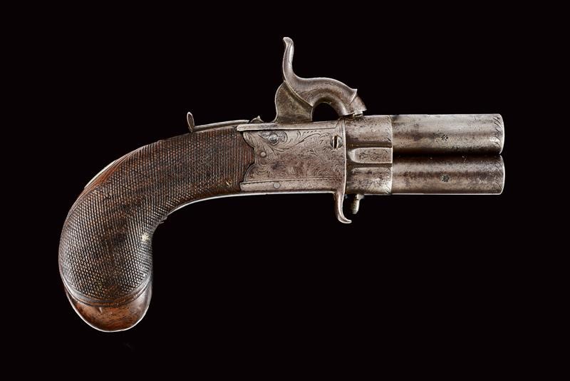 A percussion pocket pistol with turning barrels by Whaley & Son, Mid 19th Century